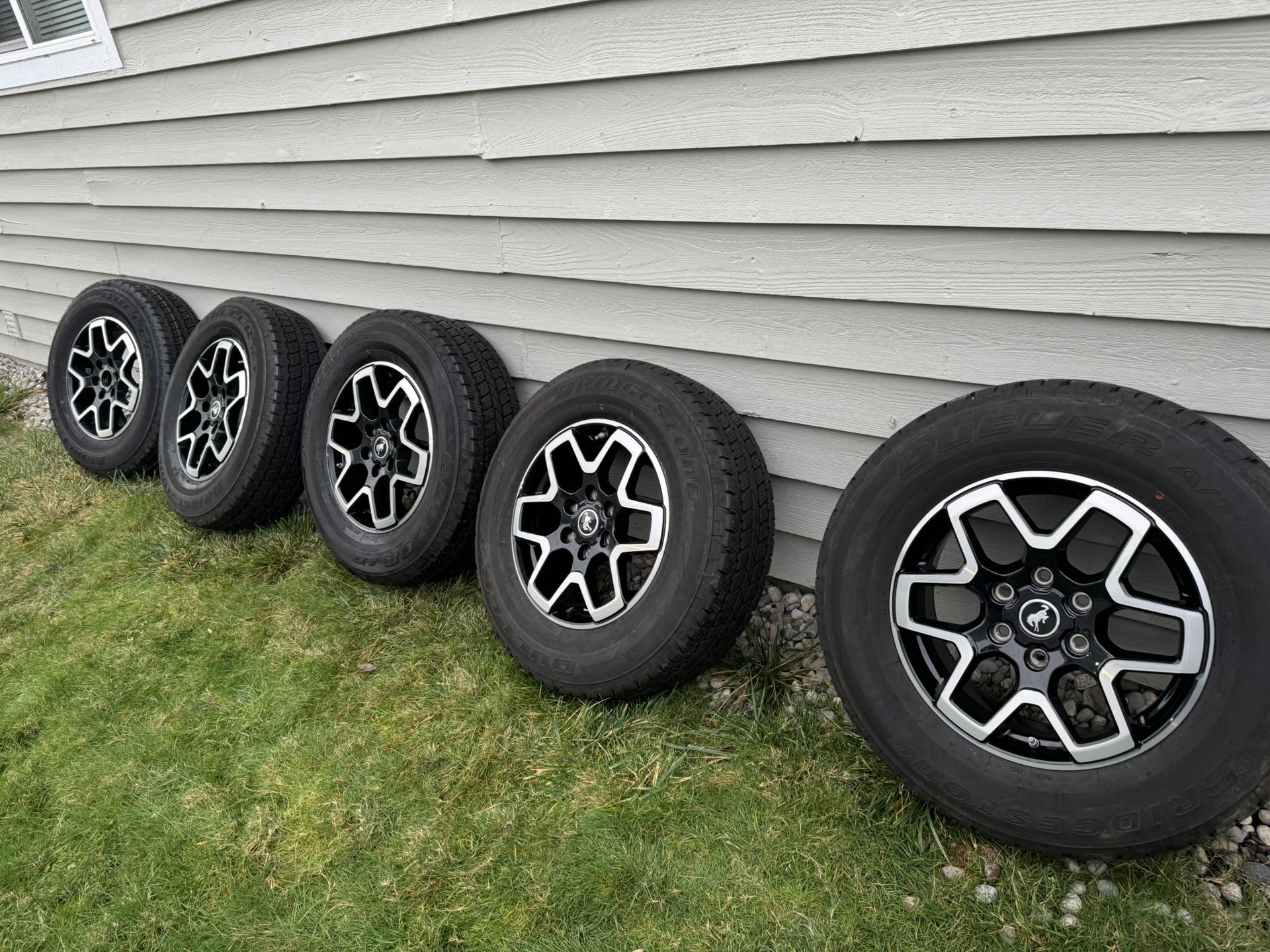 Factory take offs Fits many models with 6x139.7 255/70/18 Only 3k miles on tires nearly new Spare is brand new with 0 miles I work in south seattle and can meet at 2:30 tomorrow in south park if that works better than Auburn Will fit bronco, dodge, toyota and chevy 6 lug
