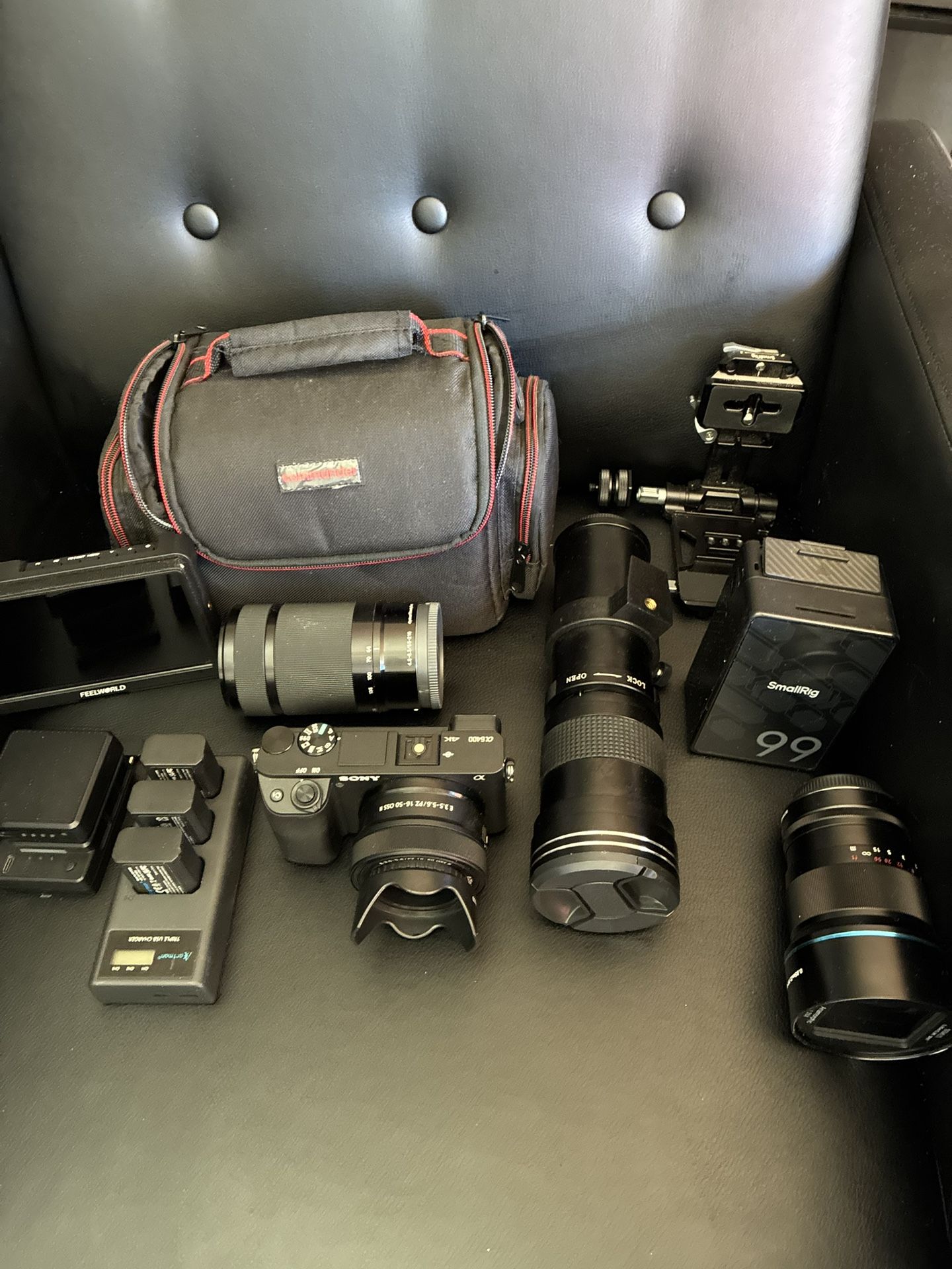 Sony Alpha a6400 Mirrorless Camera with 16-50mm and 55-210mm Lenses Bundle + Extreme Speed 64GB Memory + T-Mount 420-800mm Telephoto Zoom Lens This is Brand new used Once fir set up !!! Deciding to go with webcams !!! Enjoy gonna upload more pics