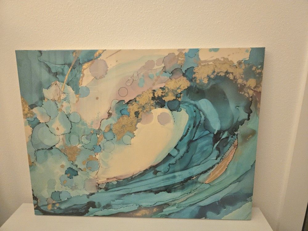 Modern marble wall art with wood backed frame. Great condition. Originally $100. 40in x 30in