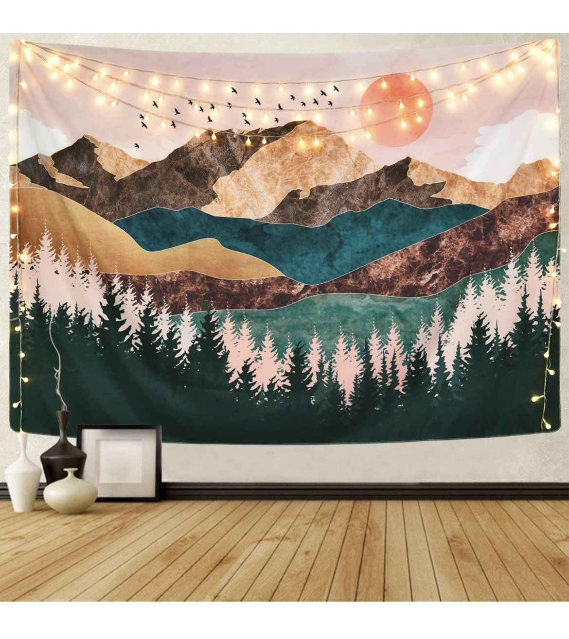 Mountain tapestry with sunset. Bought it for $30 selling for $25 59.1 x 82.7 inches MOVING SALE - check my profile to see what else I’m selling :)