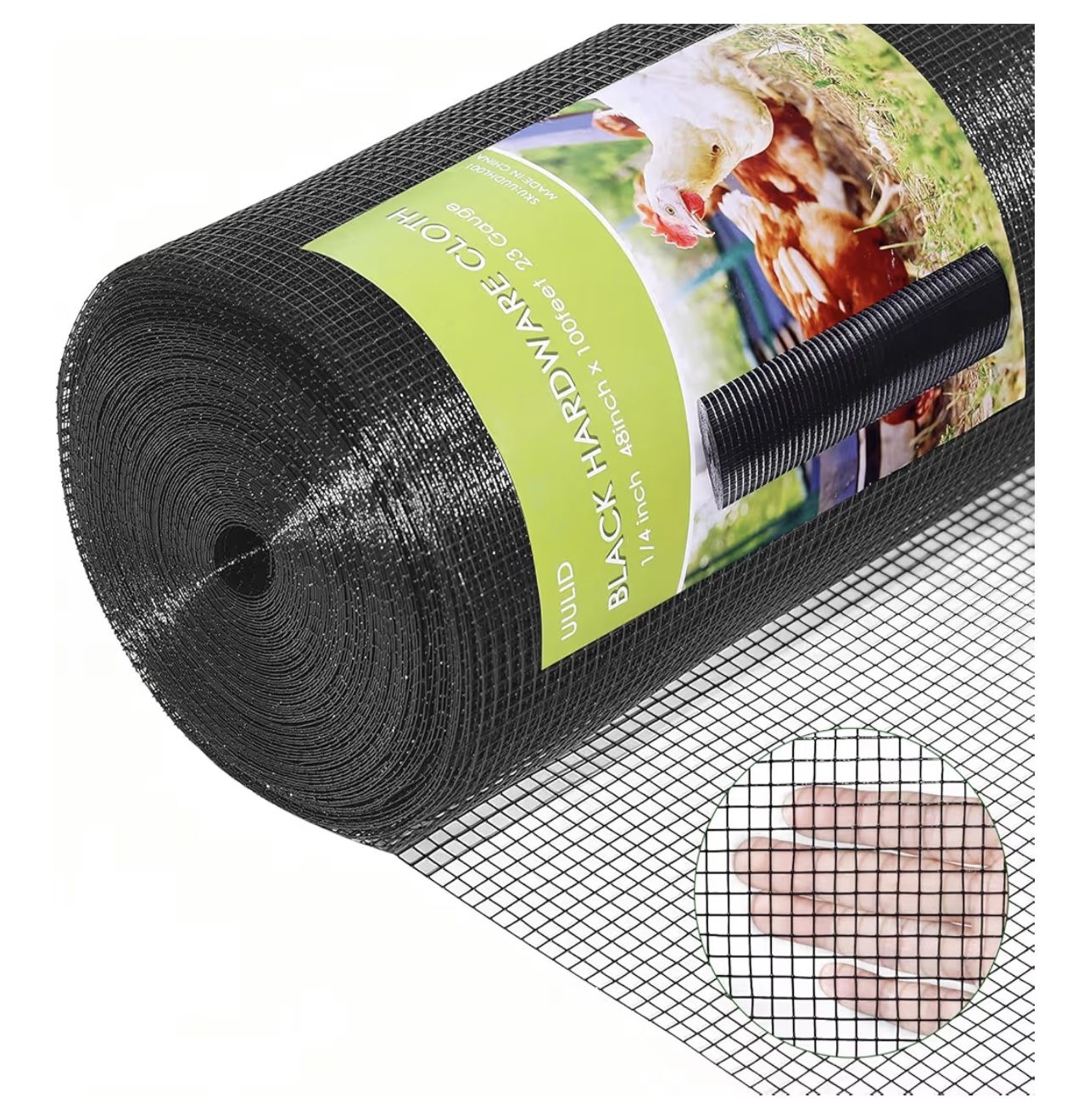 Hardware Cloth 1/4 inch 48" x 100' ft Mesh -23 Gauge Black Vinyl Coated Welded Wire Mesh Roll PVC Coated Welded Wire Fence Chicken Wire Fencing Mesh R