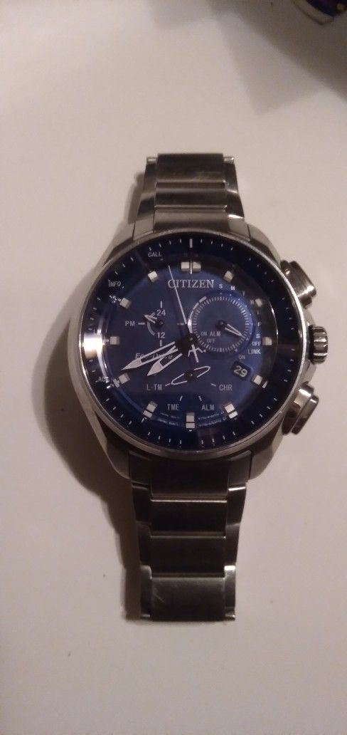 Brand Citizen Model number BZ1021-54L Item Shape Round Dial window material type Sapphire Display Type Analog Clasp Deployment W/ Push Case material Stainless Steel Case diameter 48mm Band Material Stainless Steel Band length Men's Standard Band Color Silver Tone Dial color Blue Calendar Day/Date display Movement Quartz (Light)