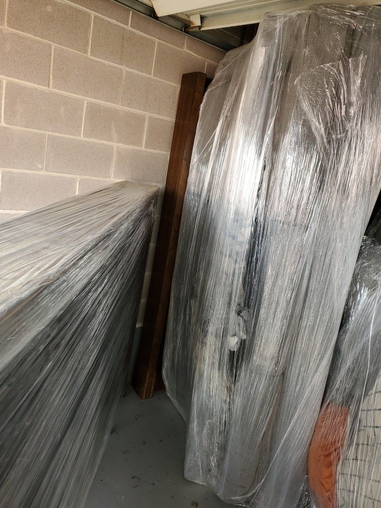Couch and loveseat in great shape been wrapped in plastic gray in color