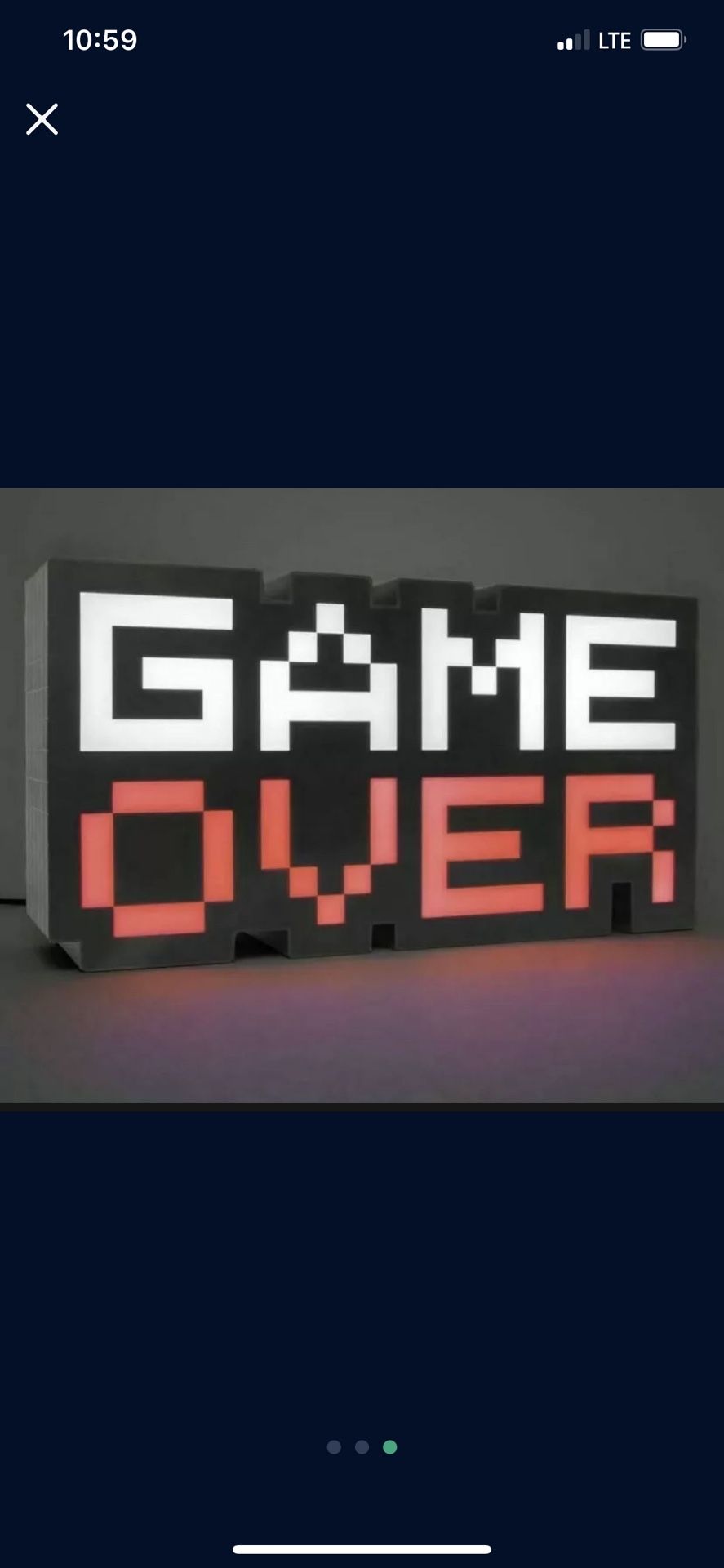 Game Over 8-Bit Pixel Color Changing Sound Reactive Collectible Decor Lamp CLASSIC GAMING COLLECTABLE: Based on classic 8-bit era arcade games USB POWERED: USB cable included
