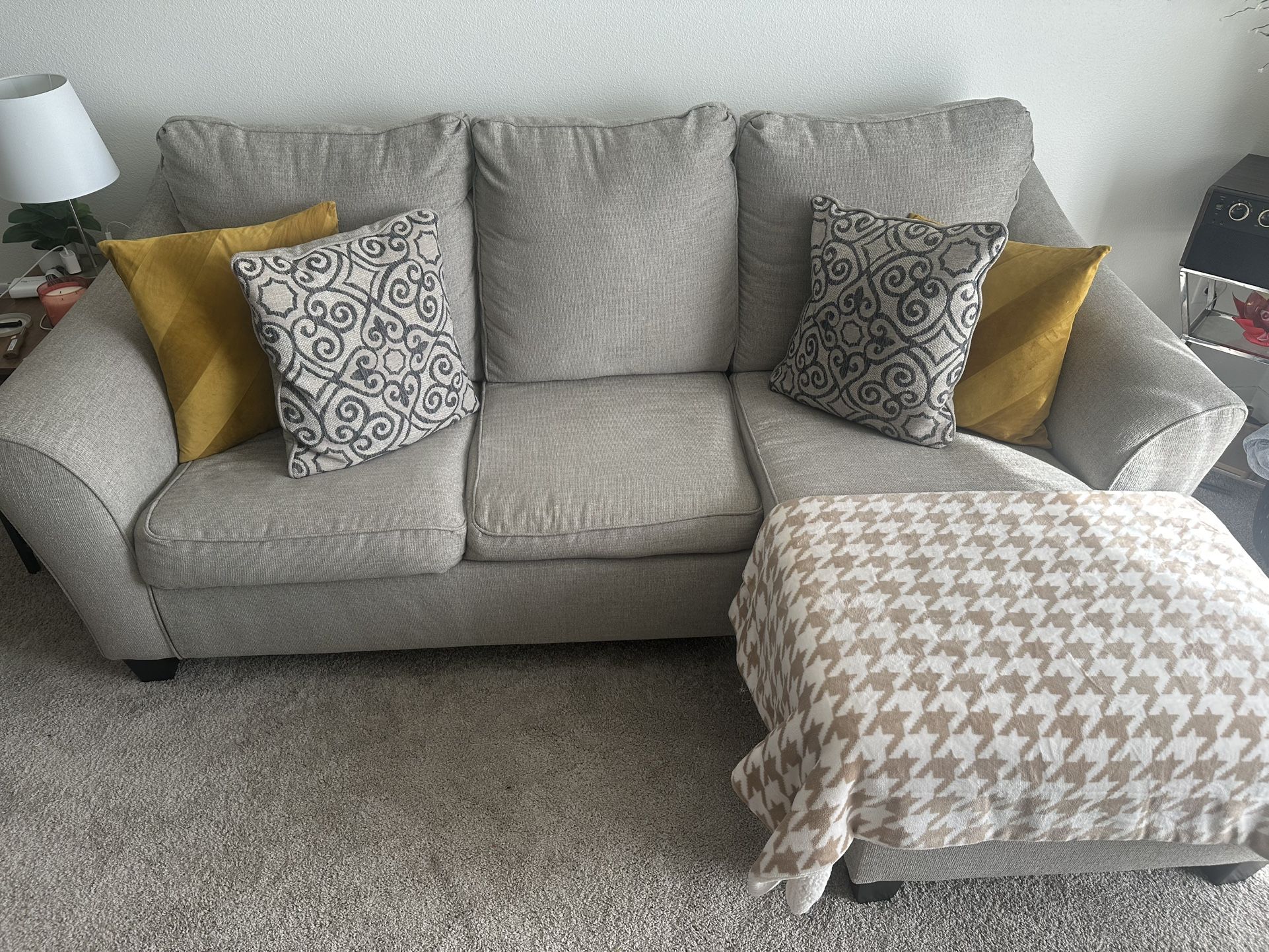 Fairly used pullout sleeper couch. Still in good condition. From Ashley’s furniture store.