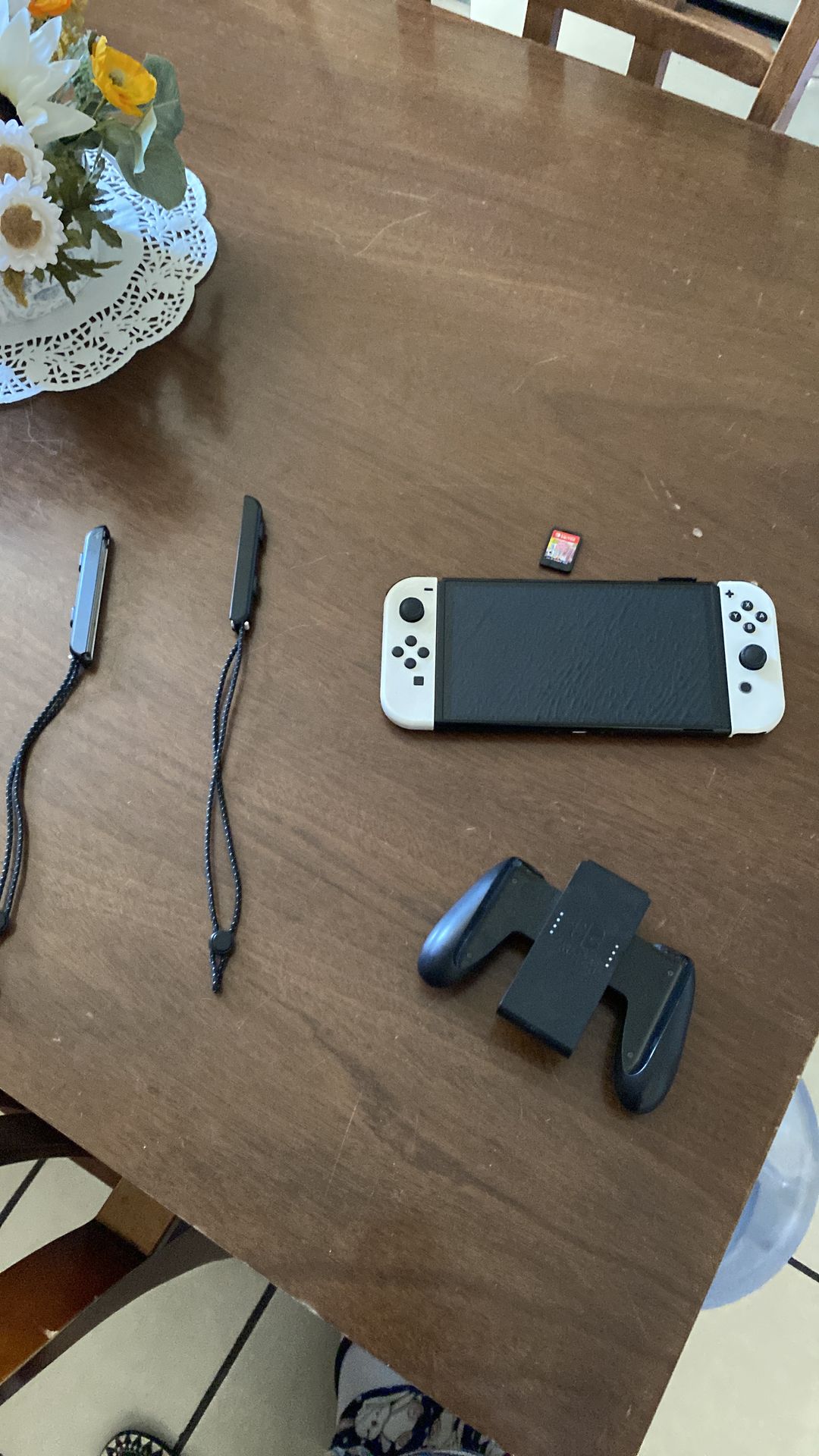 Nintendo Switch OLED Console comes with everything including the dock and charger plus a physical game card (Gang Beasts). It’s used but in good condition i wouldn’t really play with it anymore