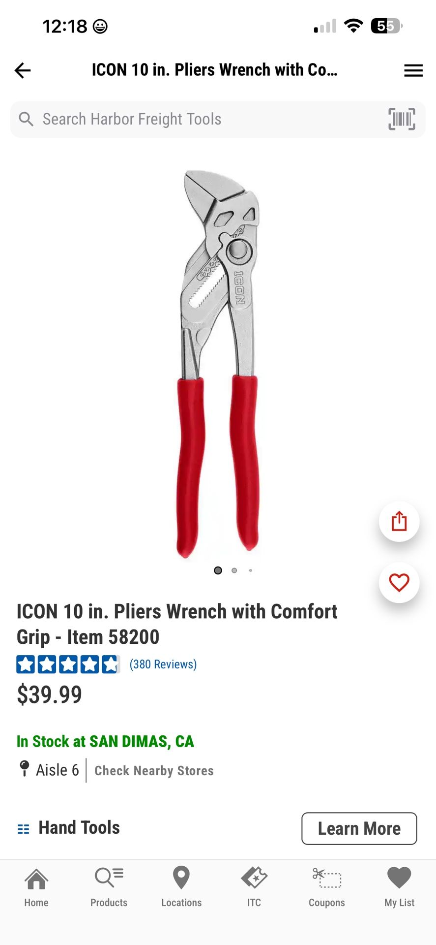 ICON 10 in. Pliers Wrench with Comfort Grip Retails for $40+tax The ICON™ Professional Pliers Wrench won't round-off nuts or bolts because the jaws remain parallel for all sizes of fasteners. Made from rugged chrome vanadium steel with a matte chrome finish for superior rust protection and durability.