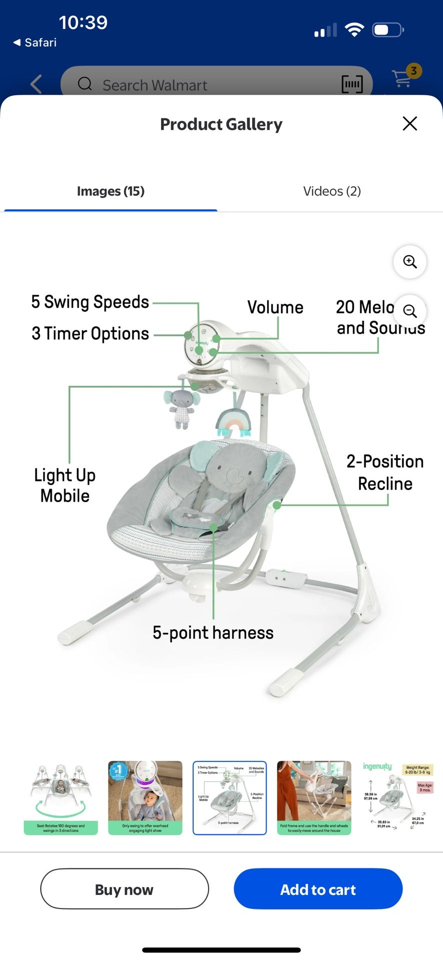 Multi-position, Adjustable swing speeds, Music, Nature sounds, Portable, Timer, Toy bar, Foldable