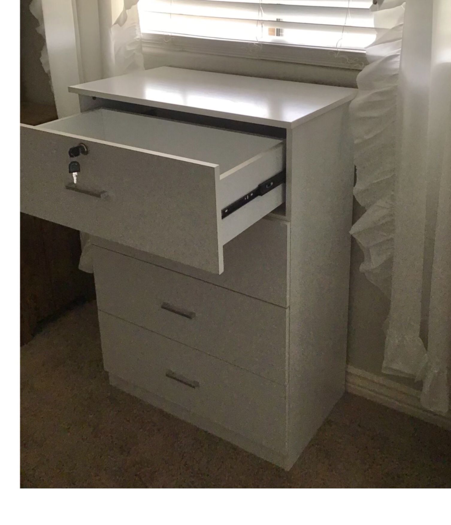 FREE DELIVERY AVAILABLE SAME DAY!!!,,,,,Assemble required 4 drawer dresser WITH LOCK Keep your belongings safe and Add a classic, simple, storage solution to your bedroom with the 4-Drawer Chest. It’s modern industrial design and clean lines will complement any decor. Profiled drawer fronts and nickeled handles help provide a timeless look. Keyed lock drawer helps keep your belongings safe from unwanted hands. Assembled dimensions: 28in. W x 41 in. H x 16 in. D Drawer dimensions: 27 in. W x 9 in. H x 14 in. D Smooth running drawer glides Safety stops to help keep the drawers secure and in place Constructed from CARB compliant, laminated composite woods Assembly required