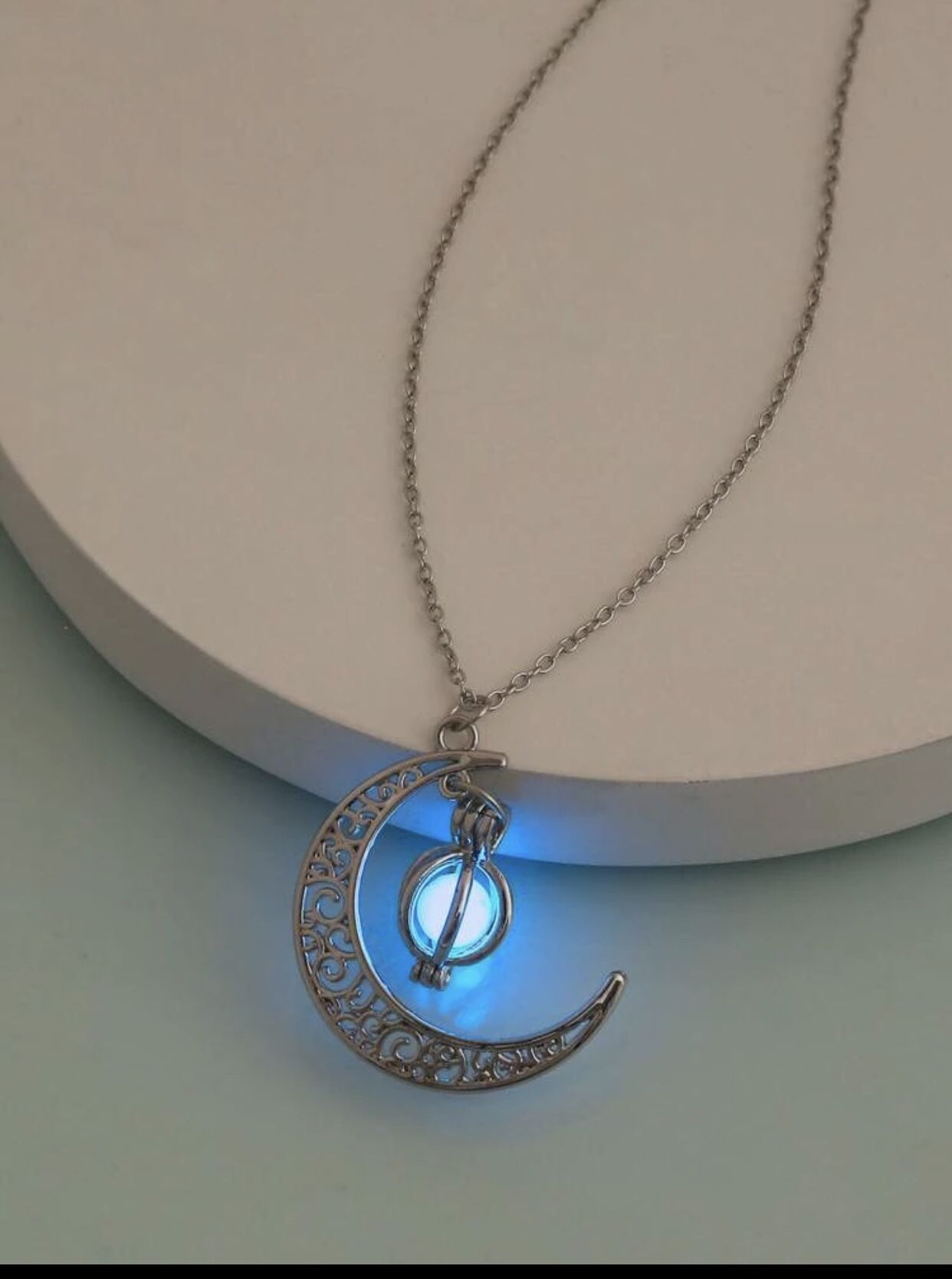 Amazing Moon Charm Luminous Charm Necklace Style: Casual Materials: Alloy Metal Color : Silver Color: Silver Necklace length :19.7” Conditions: New without tags