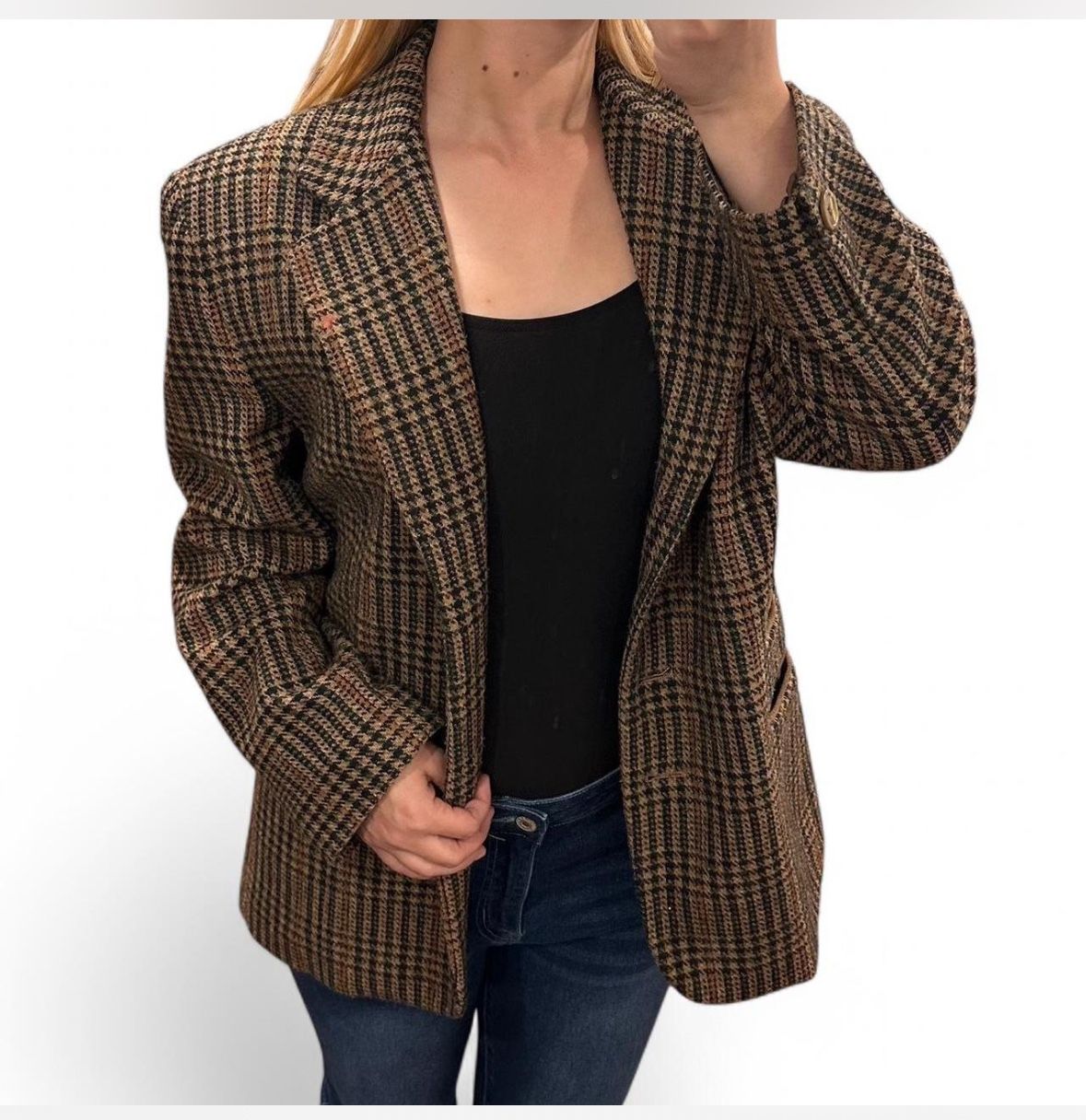 Houndstooth Brown/tan Wool Blend Blazer button down double lined classy jacket
