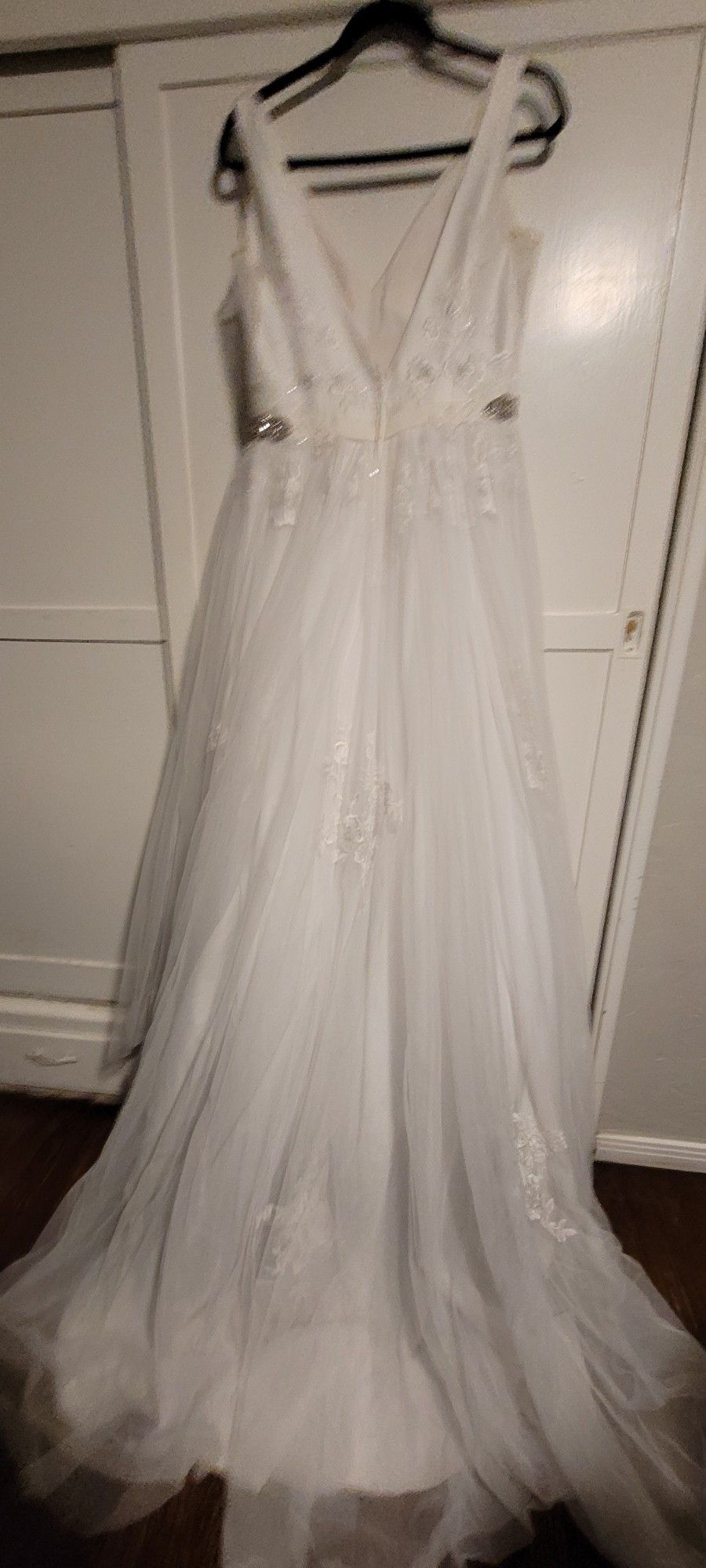 David's bridal .. Tiene un detalle pequeño. Esta poco sucio.