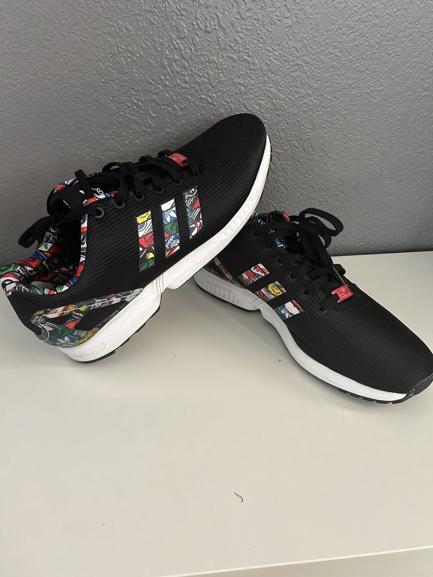 Adidas ZX Flux Black Multicolor Stripes Sneakers - US Size 12 (UK 11.5) - Good Condition