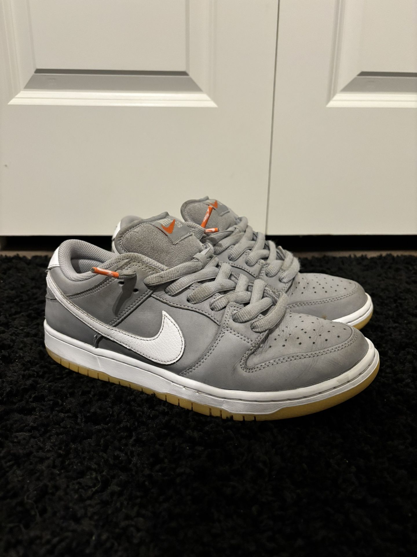 Nike SB Dunk Low Pro ISO ‘Wolf Grey’ Men’s Size 8.5 This pair has been worn pretty good. Evident scuffs/scrapes, evident small stains, and creasing. Missing the extra white laces. I cleaned this pair pretty good but still a little dirty.
