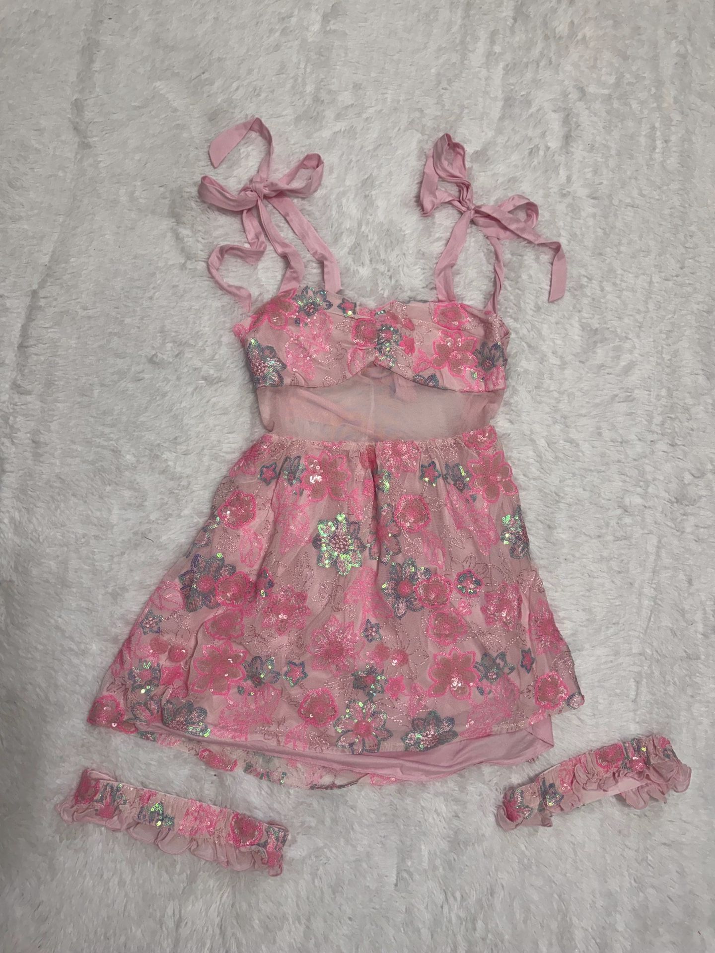 New xl pink beaded sequin floral short dress boho festival lace fairy short rave