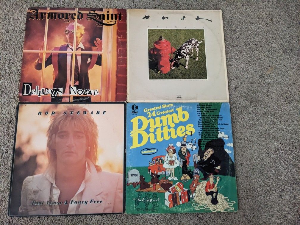 Armored Saint- Delirious Nomad ($10) Signals- Rush ($10) Foot Loose & Fancy Fee- Rod Stewart ($5) Dumb Ditties ($5)