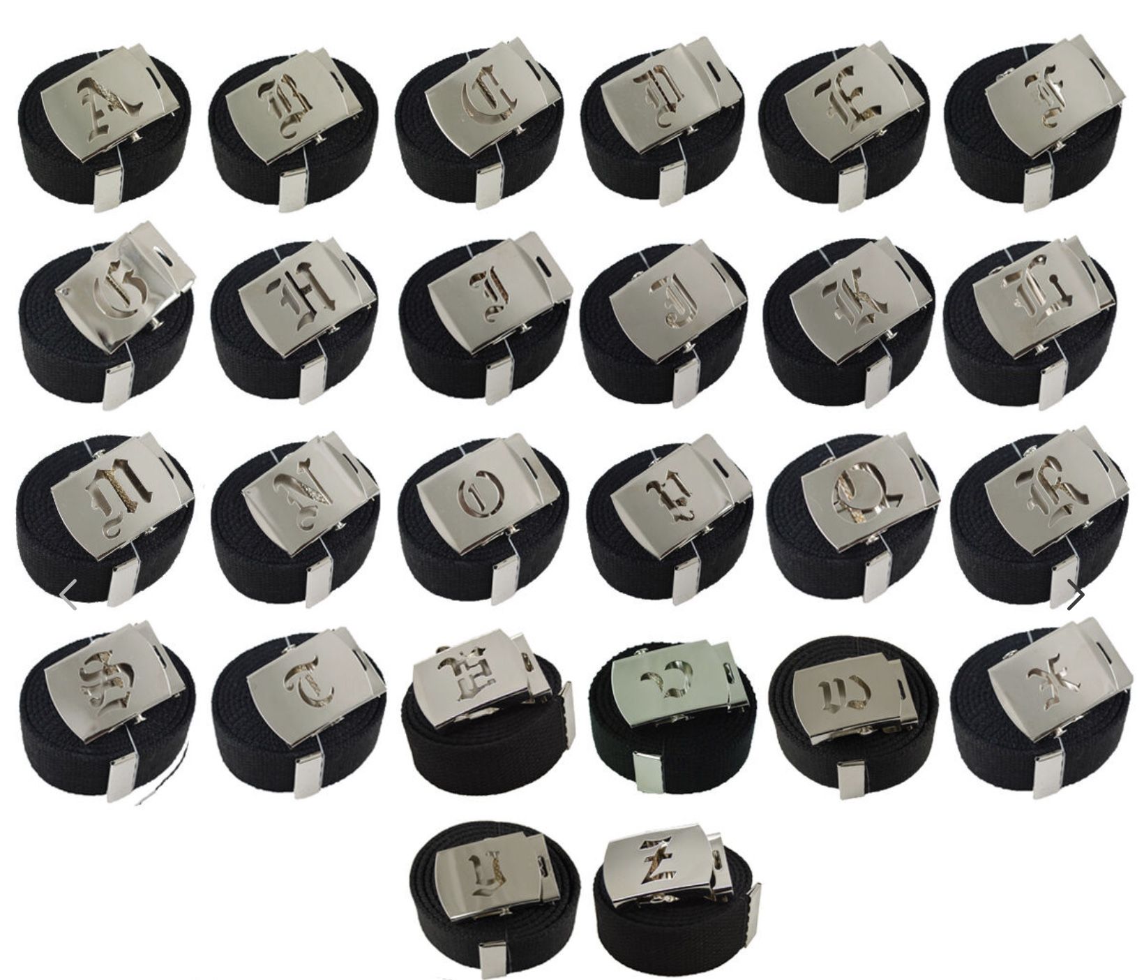 Old English buckle ( your choice of initial) Belt available in black, navy and charcoal grey. Sorry no deliveries Will ship via USPS or pick up,locally