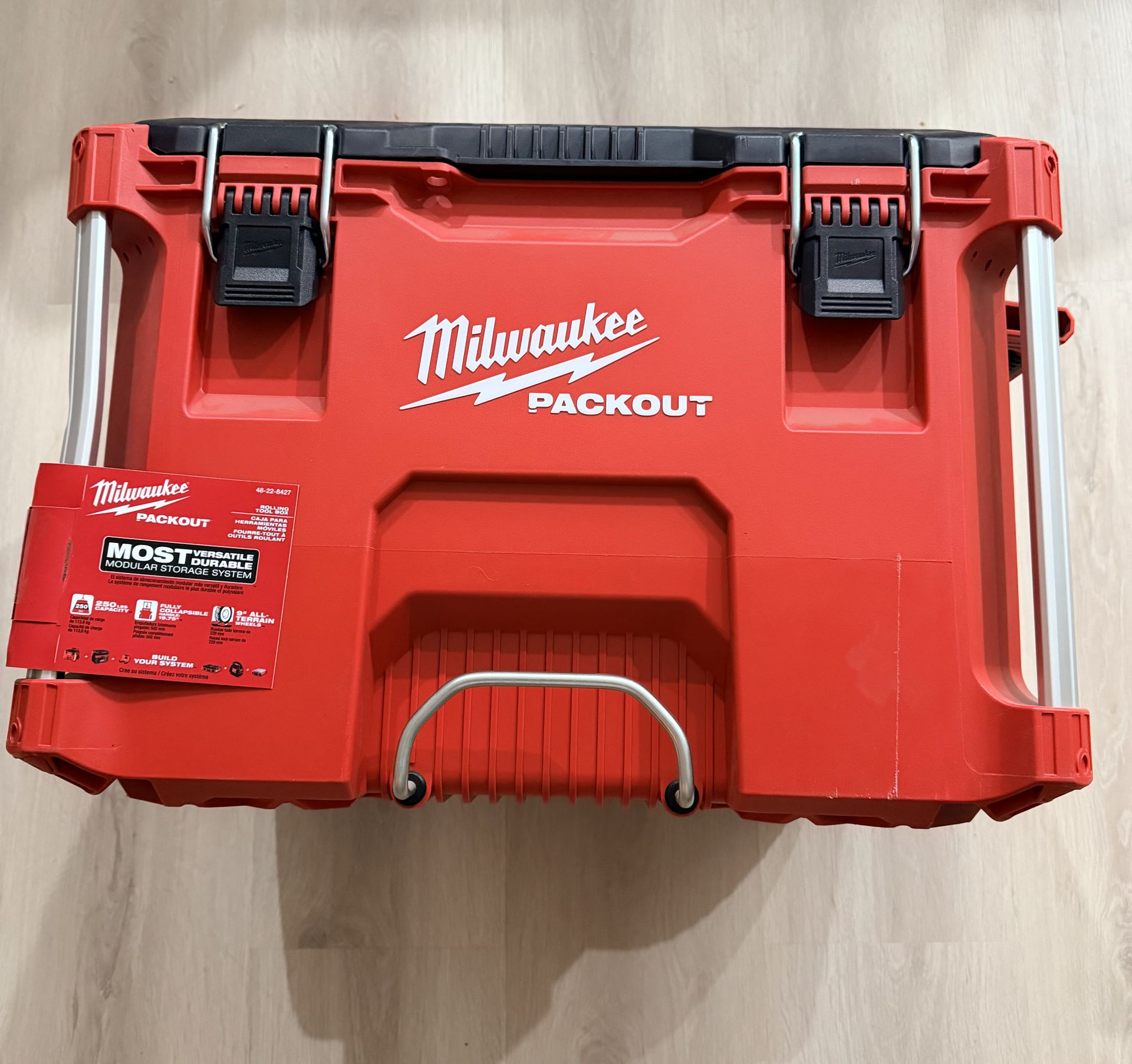 Minor dent on left side/ New Milwaukee PACKOUT 22 in. Rolling Modular Tool Box Low Profile Handle