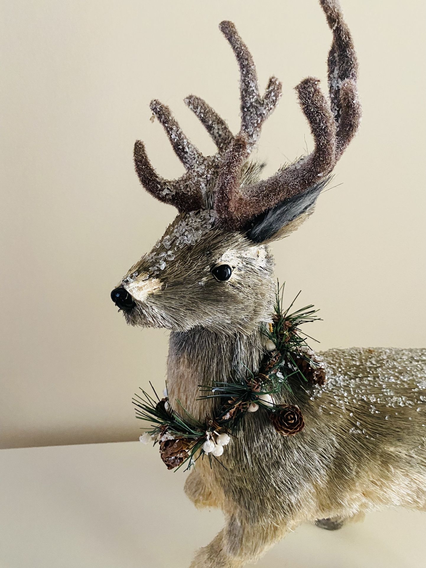 Bring a touch of woodland charm to your holiday décor with this beautiful Pier 1 Imports Standing Deer Figurine, adorned with a festive wreath and garland. Features: • 18 inches tall • Quality carved polyresin – durable and detailed • Realistic painted finish • Traditional holiday wreath + garland • Perfect for entry tables, mantels, or Christmas displays • Brand new, never displayed (no original tags) 🎄 Check out my other Christmas listings for more holiday pieces! ✨🛍️