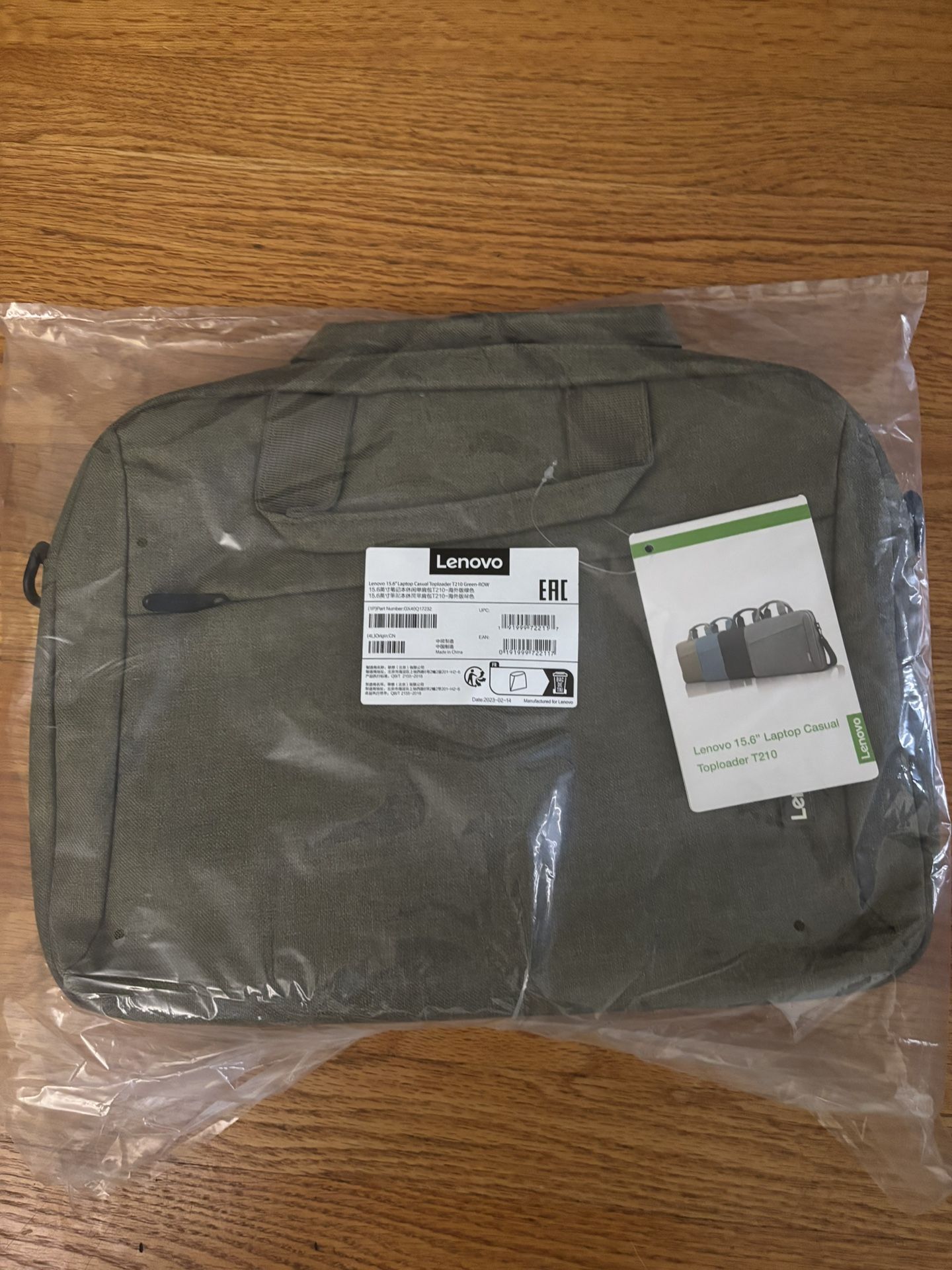 Lenovo Laptop Bag Unisex Green 15.6” Top-loader T210 Accessory Shoulder Bag New
