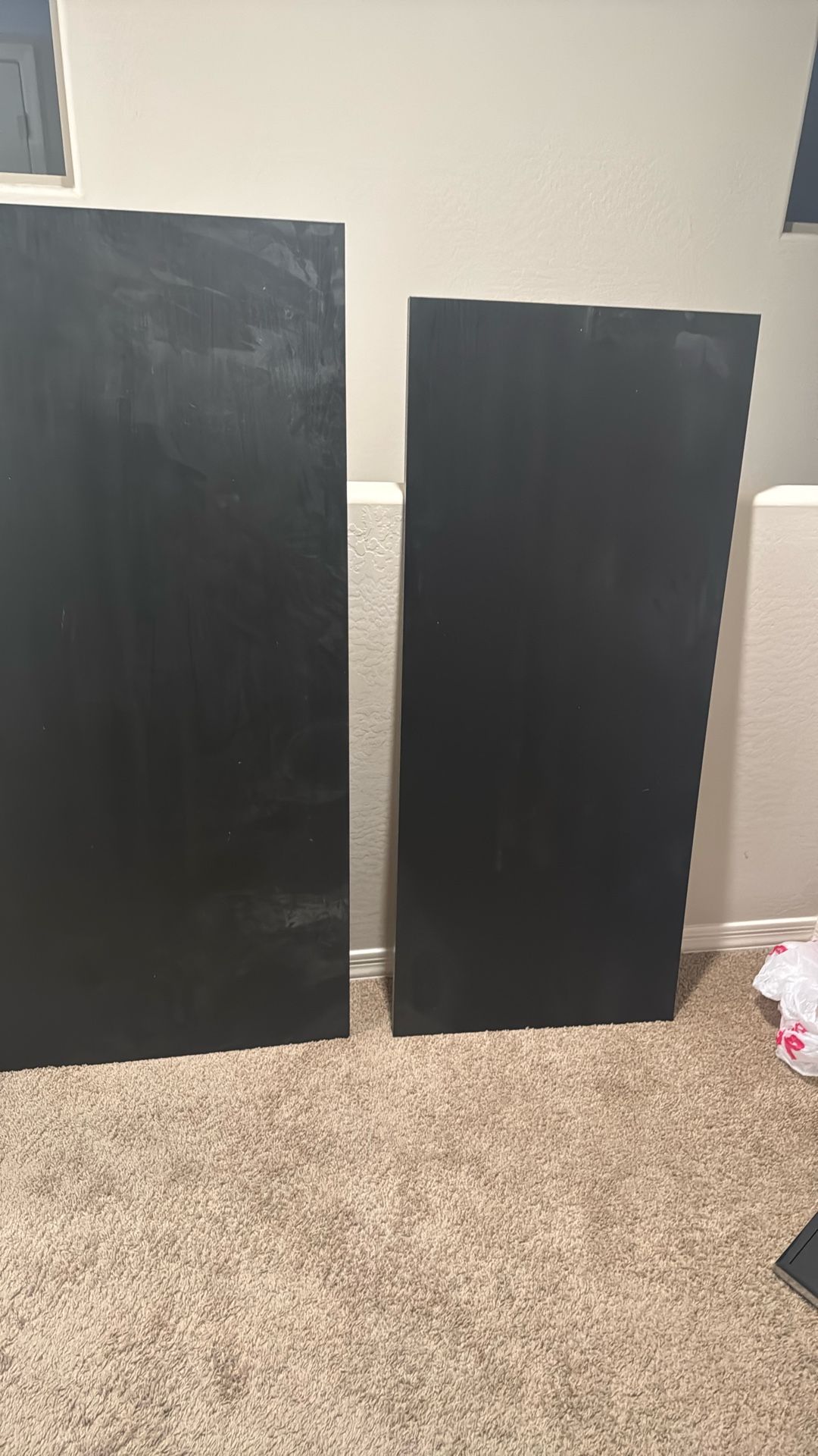 2 IKEA black desktops in great condition no scuffs coms with only 4 legs desktops demensions are 29” x 59 1/8”. 55 1/8 “ x 23 3/4 “