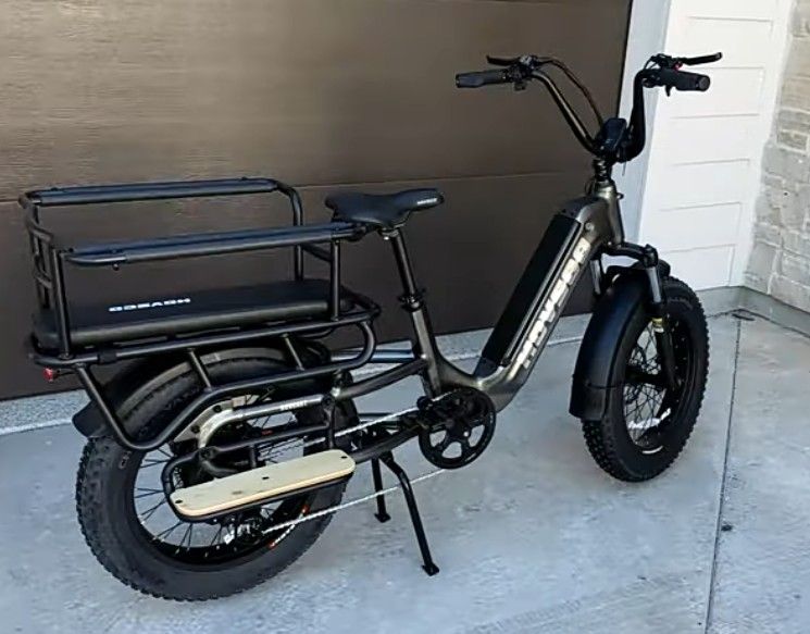 20” fat tires, cargo rack, and in dark gray step thru frame. Good for pickups, items, and carry-ons. Available in dark gray or orange. Comes brand new in a box. 80% assembled, with charger, manual, battery keys, and tools. You can test ride for free at the showroom location. 750W 1300W(peak) motor 48V 15Ah lithium battery hydraulic disc brakes + torque sensor 20” x 3 inch tires cargo rack + headlights Max speed: ~28mph Range: 40-60 miles with PAS LCD display + 7 speed gears + 5 levels of pedal assist DM today by scheduling a time to visit and meet to purchase or walk in and ask for Sherlene with listing