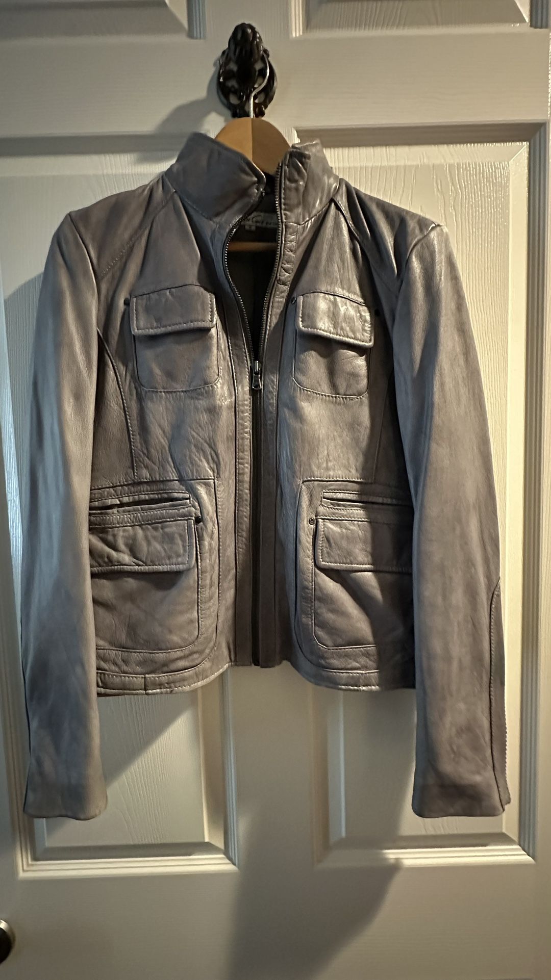 Keneth Cole 100%leather jacket color grey size M