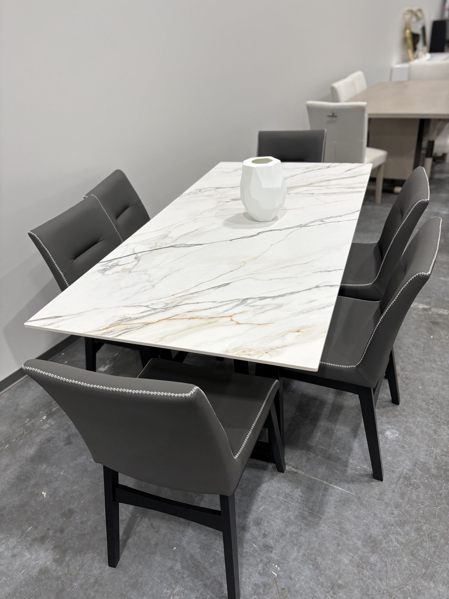 Modern Marble Dining Room With gray Chairs