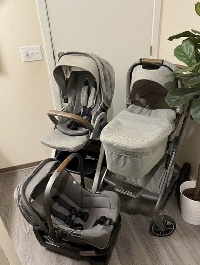 Nuna Mixx Stroller with Car Seat and Bassinet With Stand Grey