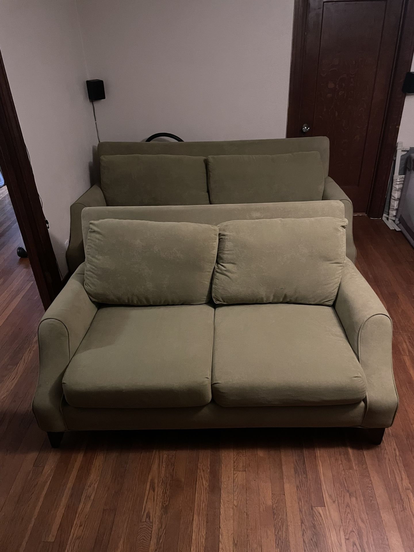 Two green sofas good condition $180