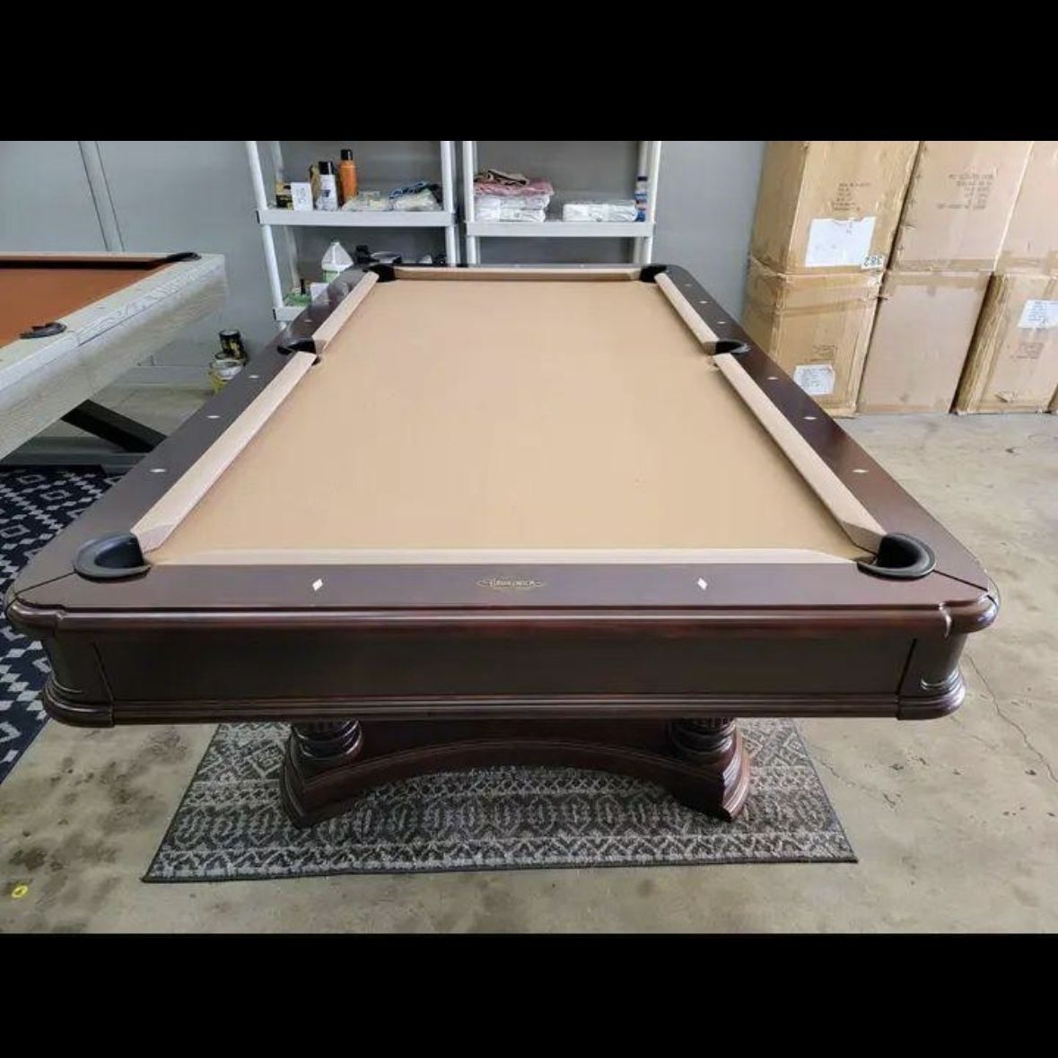 The highly sought after Montebello model by Brunswick Billiards! A very unique table with a design inspired by European royalty! A beautiful blend of old world and modern craftsmanship! It is in like new condition and comes with all needed accessories! Buyer can chose any color felt free. Ground floor delivery and install within the Valley included! Check us out at rebuiltbilliardsaz . com!