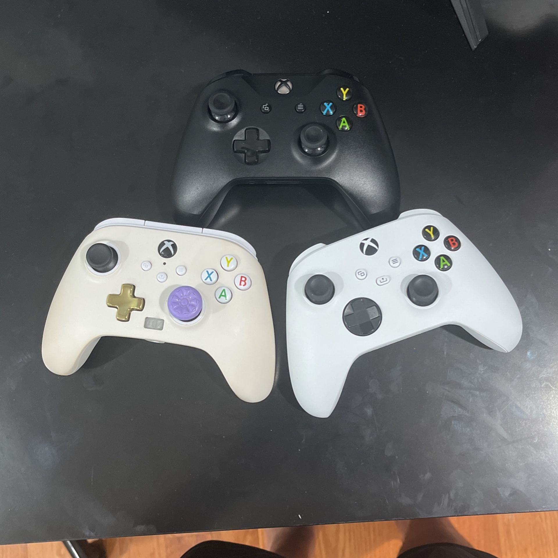 first- white wired controller with extra back buttons. ($30) second- brand new white wireless ($40) third- black wireless barely used ($35) fourth- black wired with extra back buttons. mic doesn’t not work if plugged into audio port ($30) will be willing to negotiate and cheaper prices available if you buy more than one. i’m