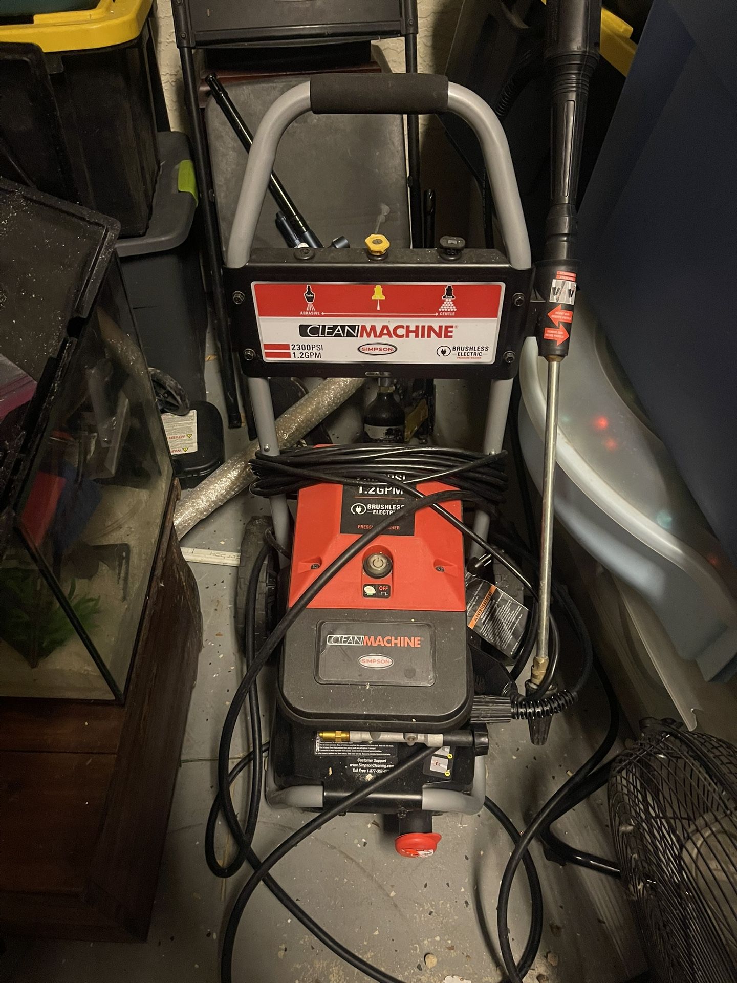 Selling my Simpson Clean Machine electric pressure washer. • 2300 PSI, 1.2 GPM • Brushless motor (more power, longer life) • Comes with hose, wand, and nozzle attachments • Works great, perfect for driveways, decks, cars, and more Used but in good condition, well taken care of.