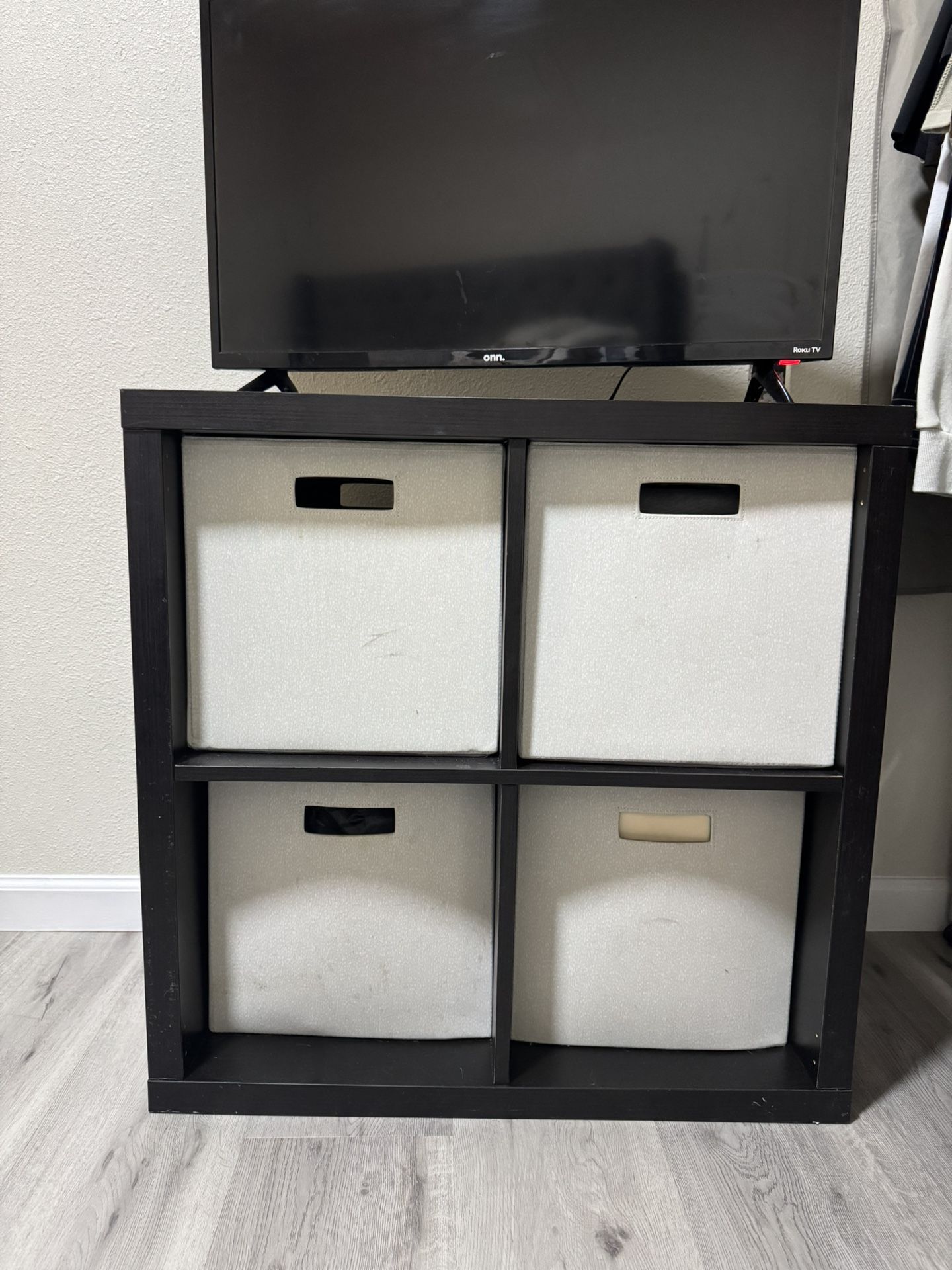 Black 4 cube organizer, has some wear and year. Scratched on the side.