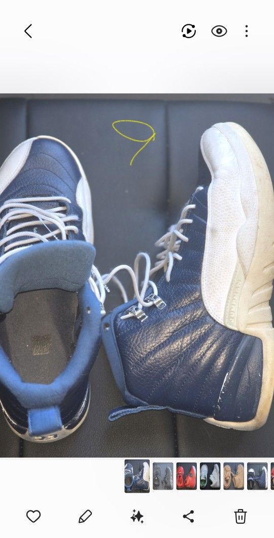 This is a pair of Air Jordan 12 Retro Obsidian sneakers. Size 9