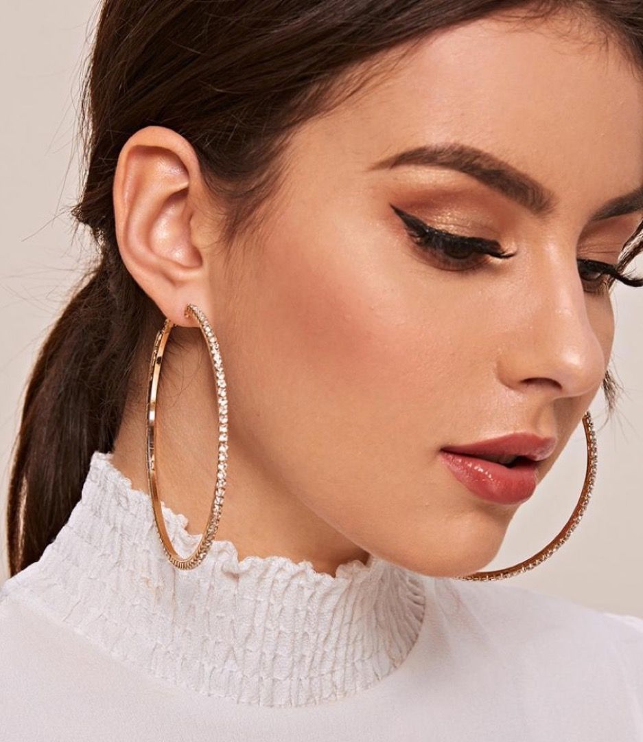 18K Gold Plated 86mm Big Circle Rhinestone Hoop Earrings, Gold Color