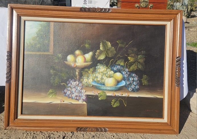 Classic Antique Hardwood Frame and Painting 24" x 36"