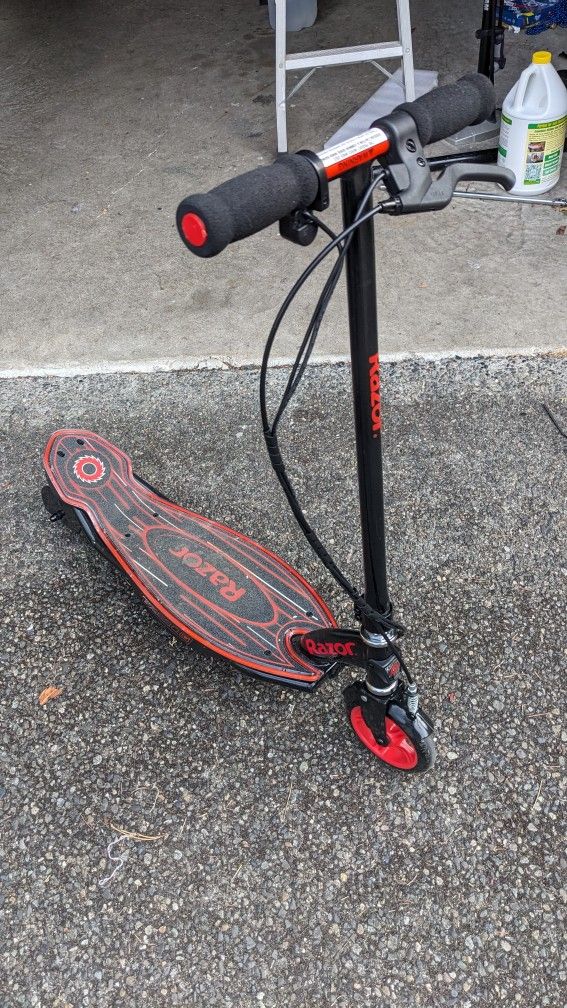 Razor Power Core E90 Electric Scooter with hub Motor, Push-Button Throttle, for Kids 8+ with charger Purchased half a year ago, only ridden once or twice - like new. [https://offerup.com/redirect/?o=aHR0cHM6Ly93d3cuYW1hem9uLmNvbS9ncC9wcm9kdWN0L0IwN1gzNzJHQ0IvcmVmPXBweF95b19kdF9iX2FzaW5fdGl0bGVfbzAwX3MwMD9pZT1VVEY4JnRoPTE=] $187 + tax on amazon