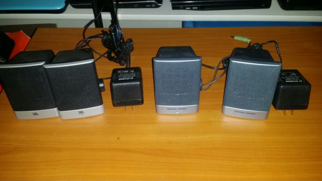 See pics for brands and model, make offer on one pair, or both. See my other items for high end Harman Kardon, Creative, Logitech sets.
