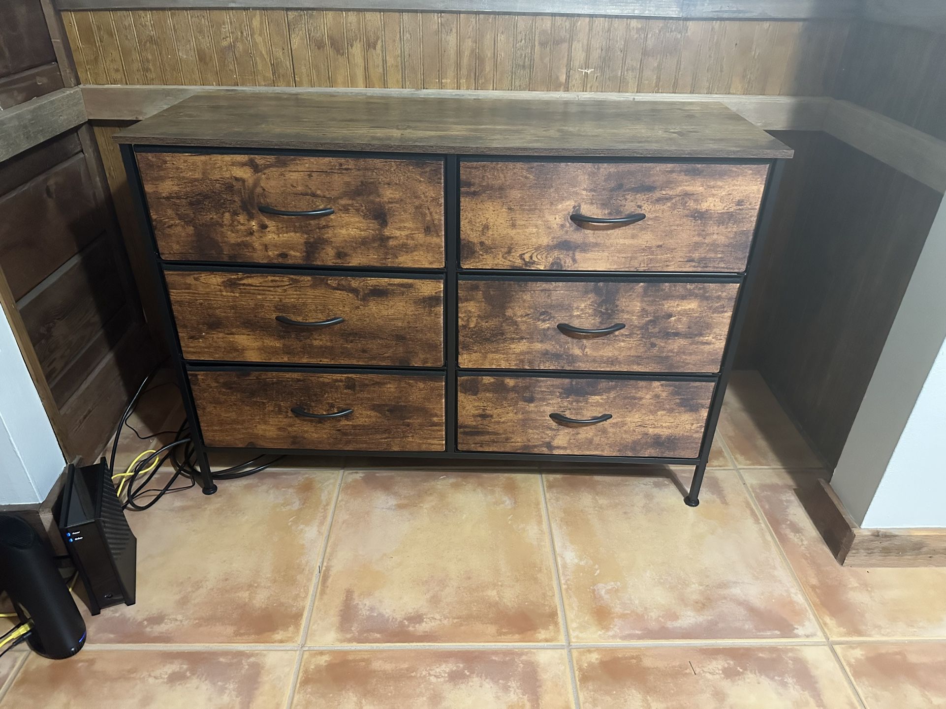 Cute, comfortable all fabric, wood laminated dresser. Barely used. No pets, no smoker