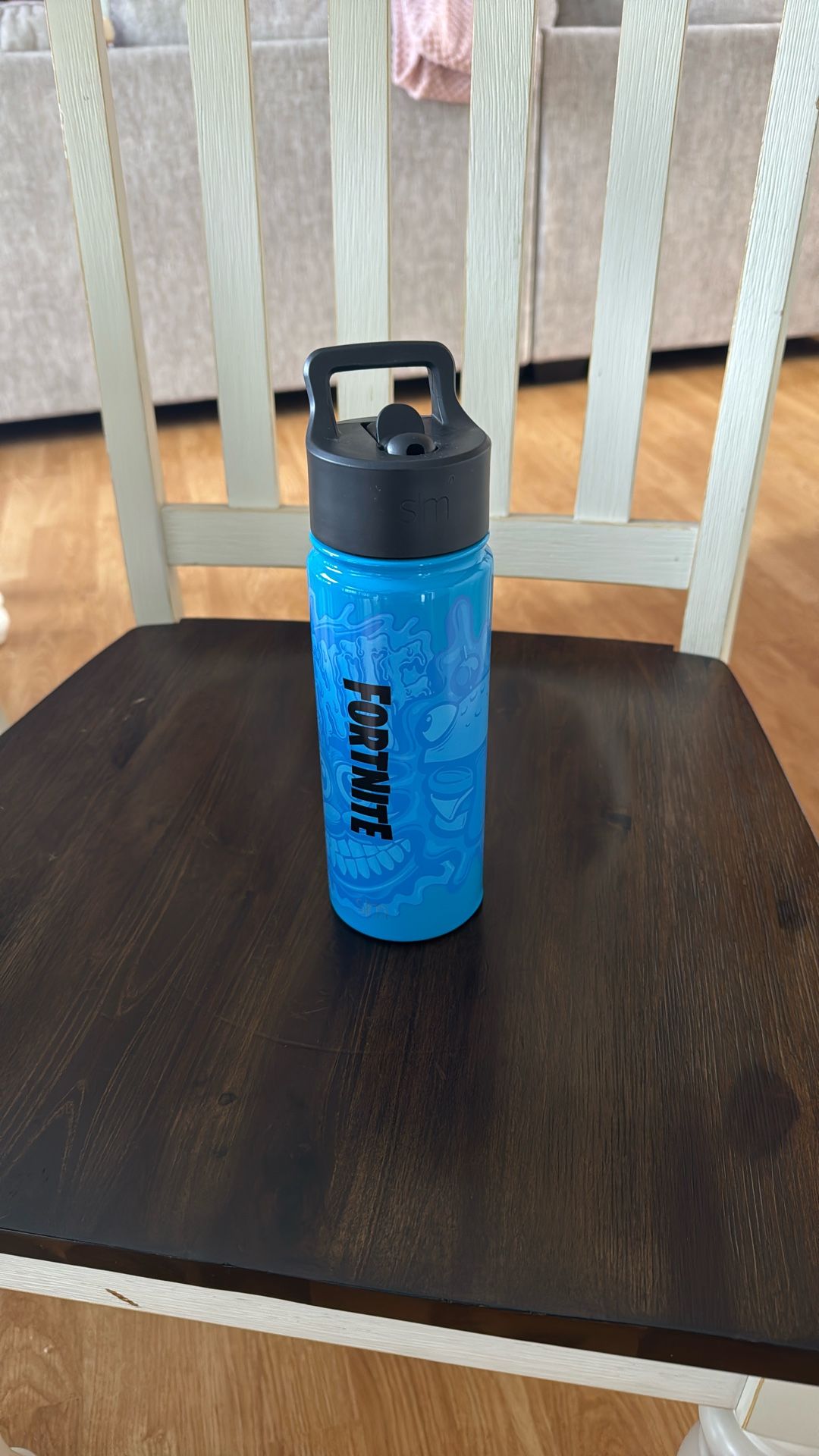 This is a Simple Modern Fortnite Summit water bottle. Made from double-walled, vacuum insulated 18/8 stainless steel. Keeps drinks cold for hours. Features a leak-proof straw lid when the nozzle is in the closed position. BPA-free and sweat-free exterior.