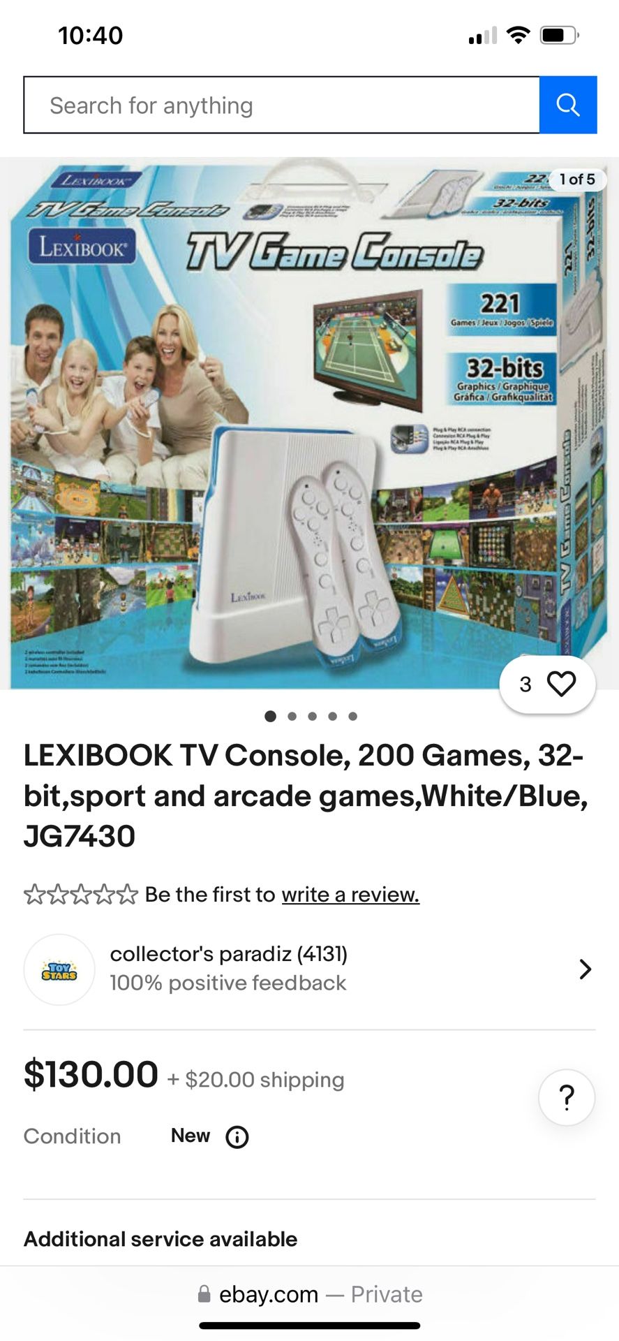 Selling a new open box, Lexi book TV game console over 200 games six years and up for $45 cash you pick up very fun system for the little one