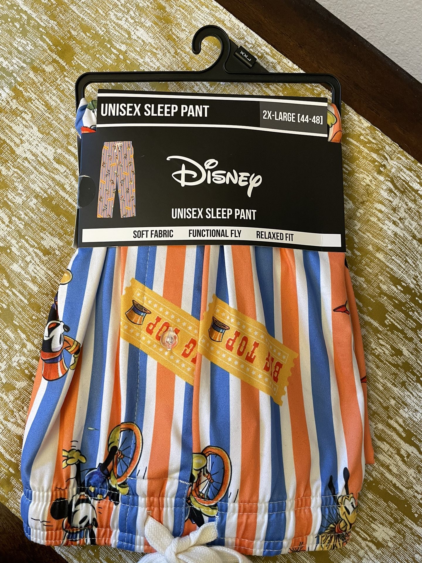 Disney Mickey & Friends Circus Striped Size Sleep Pants Bring the big top to your bedroom with these Disney sleep pants! Featuring Mickey and Friends in circus looks on a striped backdrop, these pants include an elastic drawstring waist, a button fly, and pockets for ultimate comfort. SZ 2X * 92% polyester; 8% spandex * unisex sizes * Wash cold with like colors; dry low * Imported Photos of actual items in listing This item is new with tags...not pre-owned or used. Ships from a clean smoke free home with hepa & UV dust filtration system Happy to bundle !