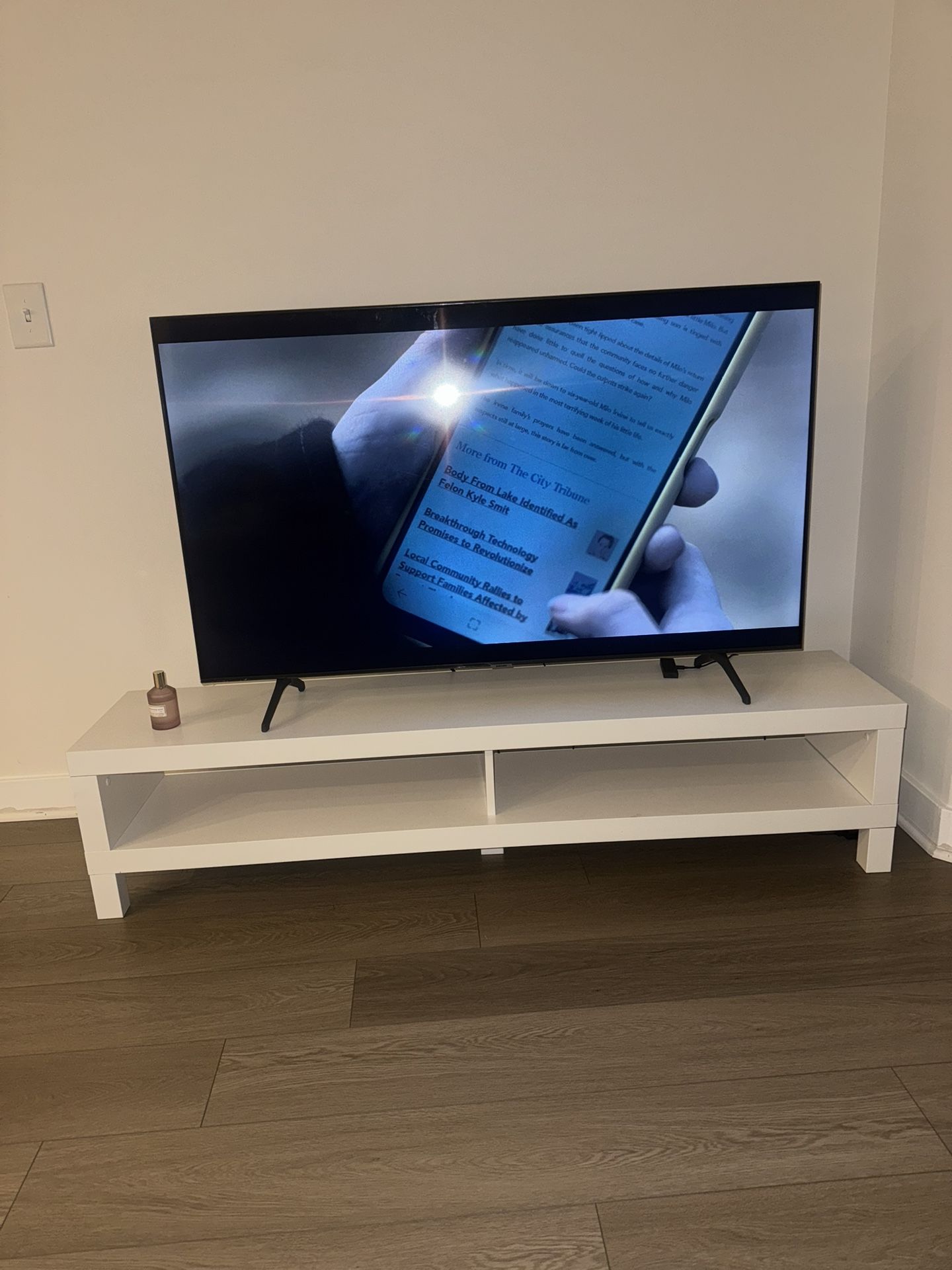 Good condition (like new!), fully assembled and ready for pickup My tv it’s standing on is 55’ inches for context