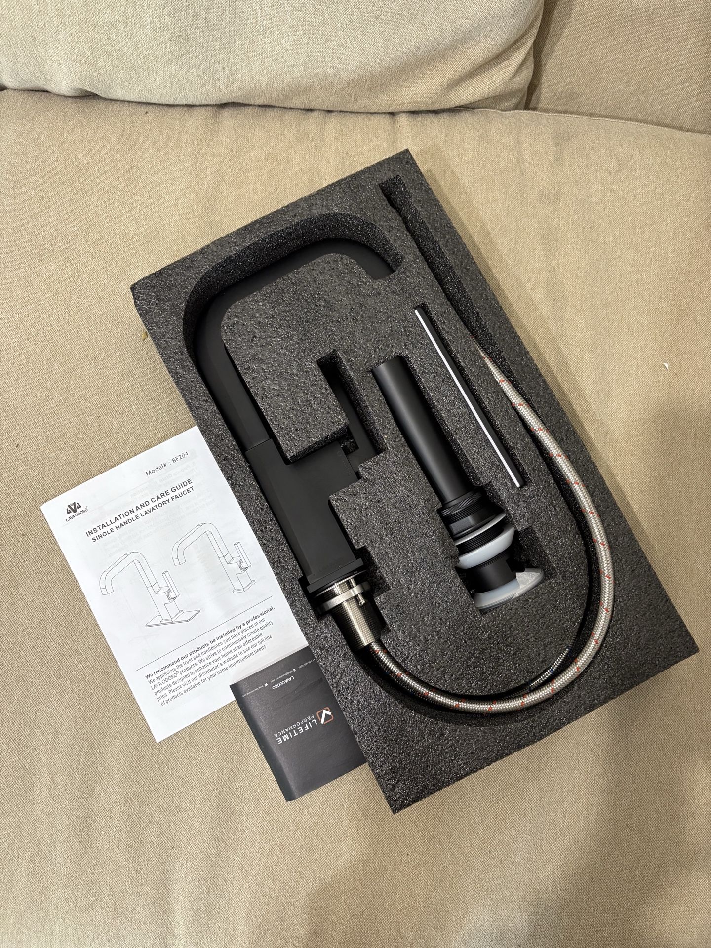 Brand new matte black bathroom faucet with modern square design – perfect for upgrading any bathroom. ✨ Features: • Premium solid brass construction – durable, rust & corrosion resistant, 100% lead-free • Elegant matte black finish – resists water spots & fingerprints • Smooth water flow with built-in aerator (no splashing) • Single handle control – easy to adjust temperature & flow • High-arc swivel spout (360°) for better usability • Ceramic cartridge tested for long-term use 🔧 Easy Installation: • Fits 1-hole or 3-hole sinks • Includes deck plate (6”) + pop-up drain + water lines 📦 Condition: Brand new 📍 Pickup in Fullerton