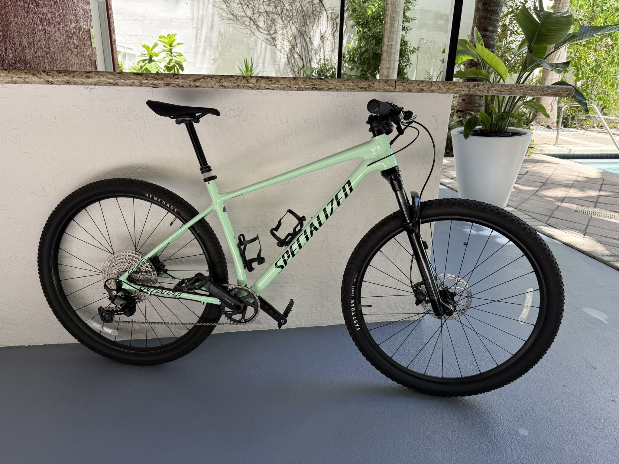 Oasis Green, 2021 Specialized Chisel Hardtail. 36 tooth front cabin ring, front tire(FastTrak Sport), Rear tire(Renegade), Fox dropper seat post, Shimano edition. Owned since May 2024. Ridden for about 1 year on the road only.