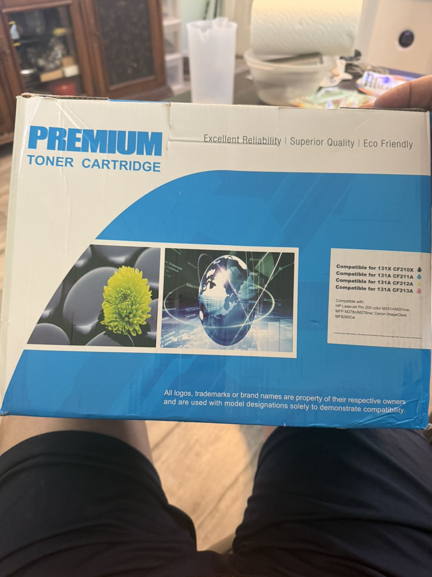 5 in pack. 2 black 3 are the other colors. Fits - laser Jet multiple series noted on box HP series. Bought new printer this box isn’t compatible with. Compatible with the 131 cartridge series. Whole box of 5 for 60$