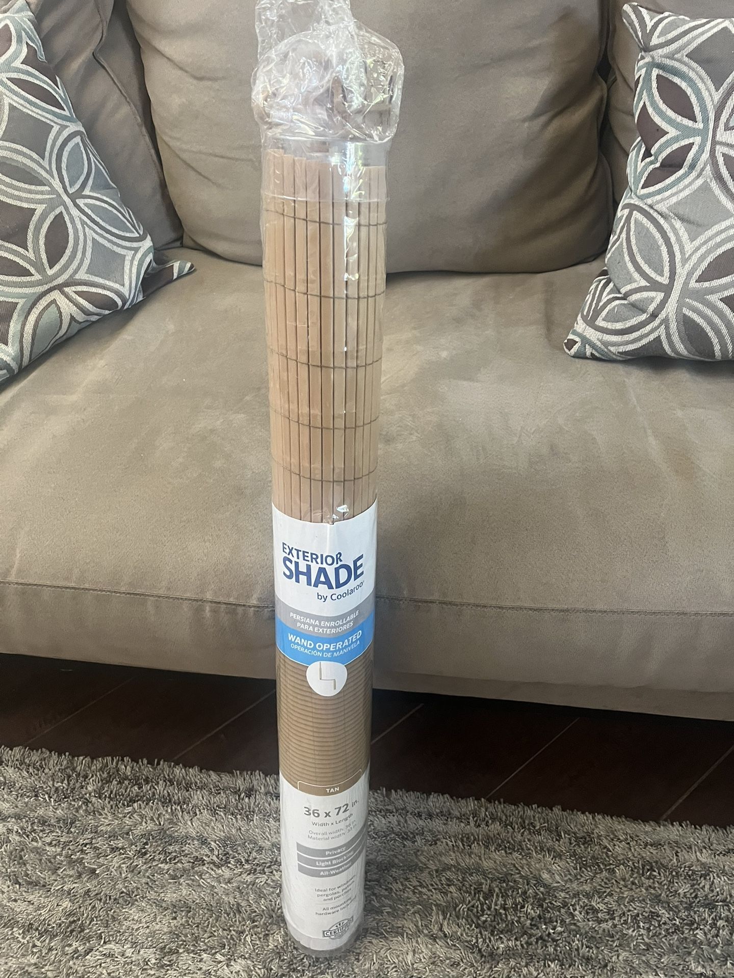 Brand new, never opened or used. Wand controlled, tan, 36x72in
