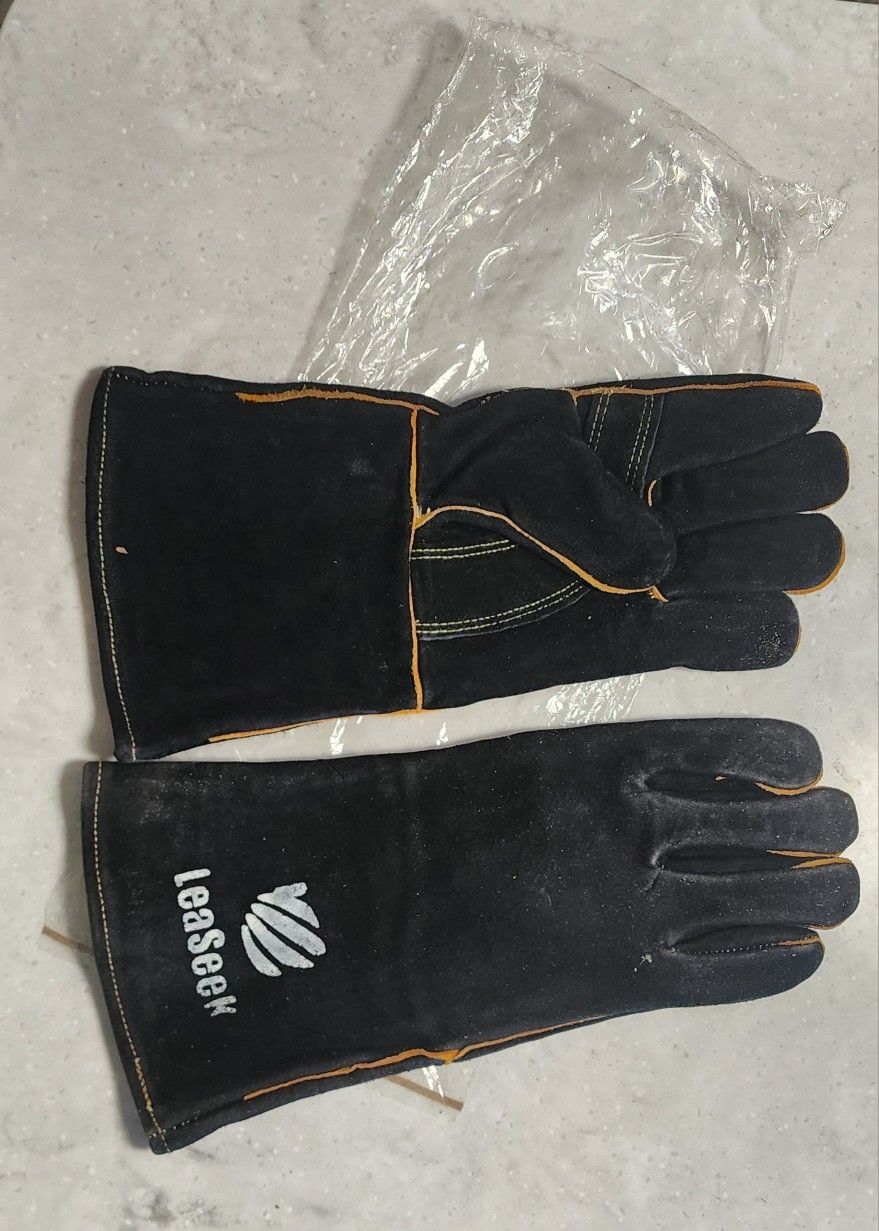 Brand new in package, never used. $10 OBO About this item: Heat Resistant Protection: Premium heavy duty leather and heat resistant Kevlar thread protect your hands in even the most extreme conditions.Excellent performance in heavy-duty welding, gripping hot stuff such as stove & cookware & burning coal or firewood. Superior Comfort: Full cow split leather surface (which made from carefully selected high-quality cow leather with thickness depth of 1.5mm),The cotton liner and Canvas cuff for heat insulation, absorb sweat and addes comfort. So it can effectively improve your work https://offerup.com/redirect/?o=ZWZmaWNpZW5jeS5Zb3U= can confidently handle hot items and sharp objects without worrying about burns or scratches. More Durable: This heat resistant gloves are made of high grade leather which is softer and stronger. It means holding items and operate easily. And the well stitching with Kevlar makes it prolong used. Rugged Reliability: Our 14-inch extra long gloves provide superior forearm protection, and the leather reinforced stress point makes it more abrasion resistant, tear resistant, puncture resistant, cut resistant and oil resistant, without compromising the sensitivity of the fingertips. Wide Range Application: This leather glove features and excellent quality make it useful for welding, forge, grill, barbecues, gardening, camping, baking, gauntlet, fireplace, cutting, oven, pruning flowers, campfire, Stove. Unique gift for father, brother, dad and husband.