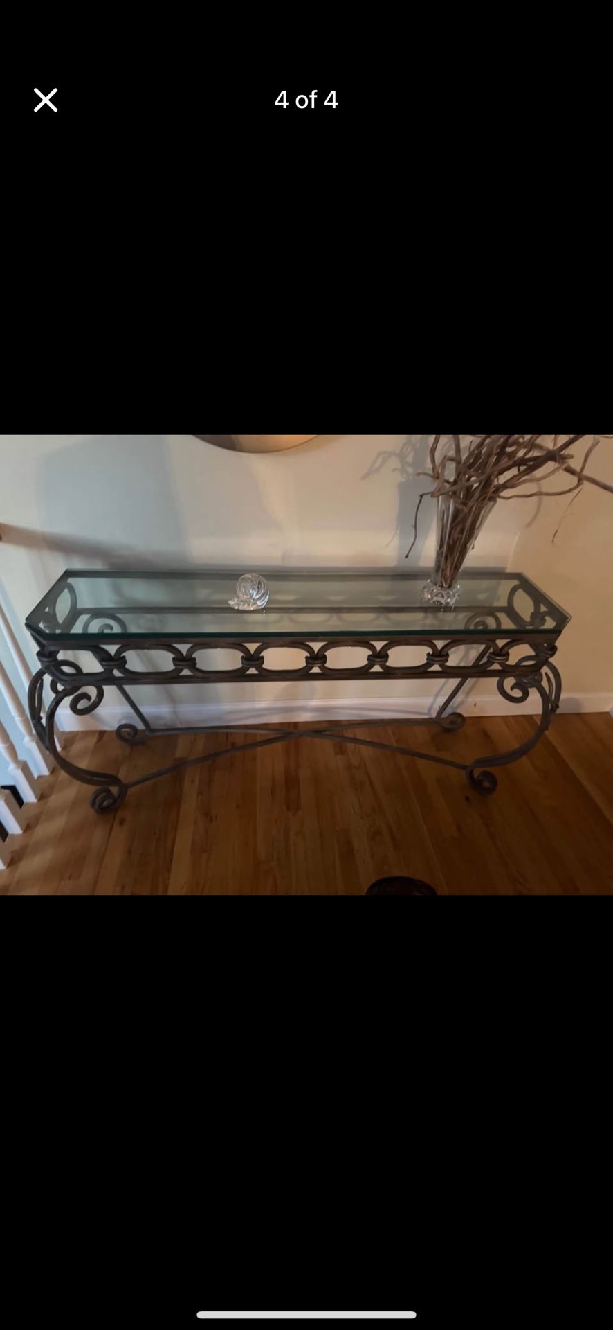 Glass Top Elegant Cast Iron Entryway Table